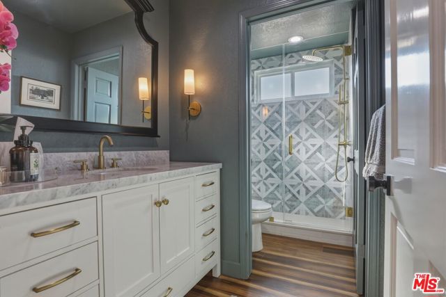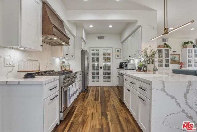 Conveniently located in the highly sought-after Lewis Home corridor of Playa Del Rey, this beautifully renovated 4-bedroom, 3-bathroom residence features the largest Lewis Home floorplan, highlighted by an expansive 800 sqft primary suite. Situated on an over 5,000 sqft lot, this exceptional home blends modern upgrades with timeless comfort, showcasing wood floors, dramatic 18-foot ceilings, and abundant natural light throughout. Custom built-ins, updated doors and hardware, skylights, and designer window coverings elevate the home's sophisticated aesthetic. The main living area offers a bright and inviting living room anchored by a marble fireplace, flowing seamlessly into the adjacent dining area, ideal for both everyday living and entertaining. Designed for effortless indoor-outdoor living, the open-concept layout leads directly to a lush, private backyard retreat. Surrounded by mature landscaping including wisteria, camelia trees, lime and lemon trees, the outdoor space provides a serene setting for relaxation or entertaining. The updated chef's kitchen is a true showpiece, featuring white shaker cabinetry, LED under-cabinet lighting, a ZLINE range, Bosch dishwasher, and a stunning waterfall-edge countertop. A custom walnut hood cover adds warmth and character, while the breakfast bar, walk-in pantry, and eat-in dining nook with custom built-in bench seating, hidden storage, and garden views complete this thoughtfully designed space. The first floor includes a versatile bedroom or office with a custom-built closet, along with a renovated bathroom, perfect for guests or flexible living. Upstairs, the luxurious primary suite serves as a private retreat, complete with a marble fireplace, oversized walk-in closet, and a spa-inspired en-suite bathroom featuring dual vanities, a soaking tub, and a separate shower. Two additional bedrooms and a fully renovated bathroom with dual sinks complete the upper level. Additional highlights include a dedicated laundry room with a high-capacity laundry sink, central air and heat, an attached 3-car garage with EV charger, portable sauna, and a Google/Nest Vivint smart home security system with cameras. Ideally located near the beach, top-rated restaurants, scenic cycling paths, and vibrant coastal amenities, this home offers the best of Playa Del Rey living, where comfort, style, and location come together.