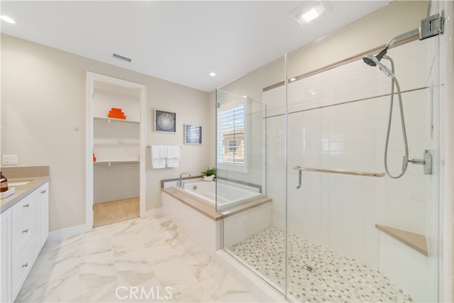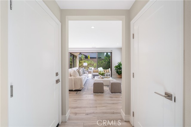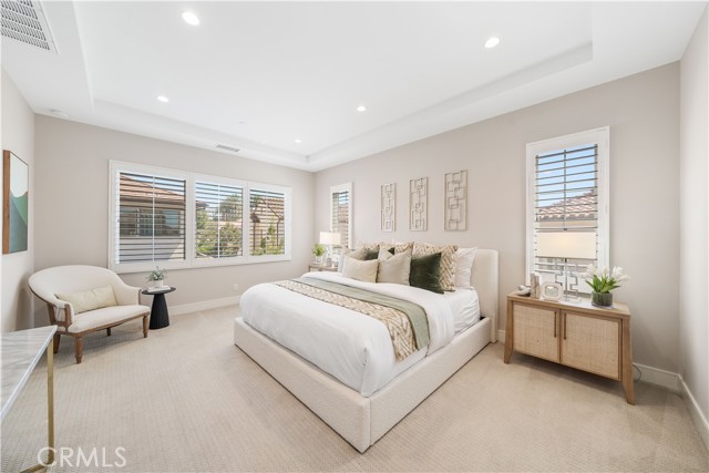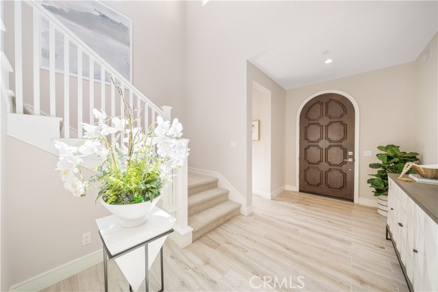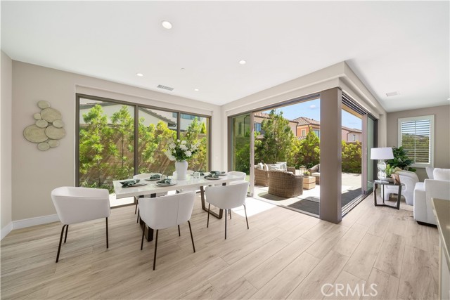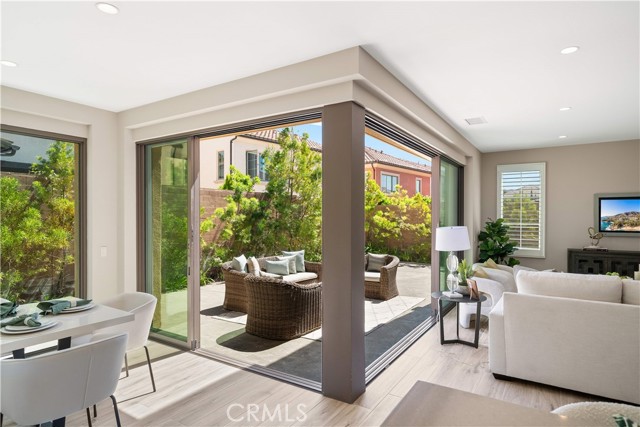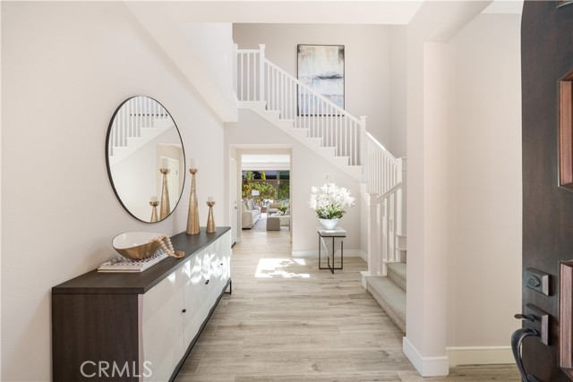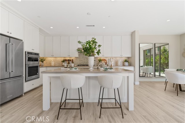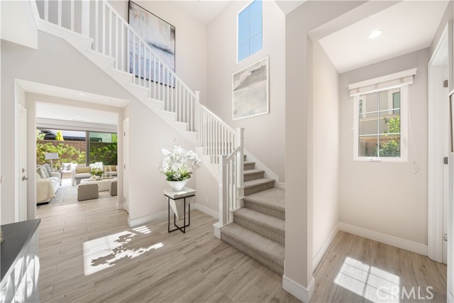Situated on a premium lot with an oversized backyard, this elegantly upgraded detached home in the exclusive Reserve at Orchard Hills embodies sophisticated design, seamless indoor-outdoor living, and the best of Irvine’s luxury lifestyle. Upon entry, a dramatic two-story foyer creates an immediate sense of openness and sophistication. The thoughtfully designed first floor features an open-concept layout, highlighted by wood-look tile flooring and expansive panoramic sliding doors that fill the great room with abundant natural light. The seamless indoor-outdoor flow leads to a spacious backyard—ideal for entertaining, relaxing, and enjoying Southern California’s year-round sunshine. The gourmet kitchen is designed to impress, featuring stainless steel appliances, a large center island, granite countertops with a full designer backsplash, and crisp white cabinetry offering generous storage. Upstairs, you’ll find three well-appointed bedrooms, including a luxurious primary suite, along with a conveniently located laundry room. The primary suite offers a tranquil retreat with large windows and abundant natural light. The spa-inspired bathroom showcases upgraded tile flooring, dual vanities, a soaking tub, a walk-in shower with upgraded tile finishes, and a spacious walk-in closet. The two secondary bedrooms are generously sized and bright. The secondary bathroom features dual sinks and a shower-over-tub with a stylish backsplash, providing both functionality and modern appeal. Residents of Orchard Hills enjoy resort-style amenities, including parks, pools, spas, recreation centers, BBQ areas, and scenic walking trails. The community park is just steps from the home, and the property is located within the highly acclaimed Irvine Unified School District—making it an exceptional opportunity for families.