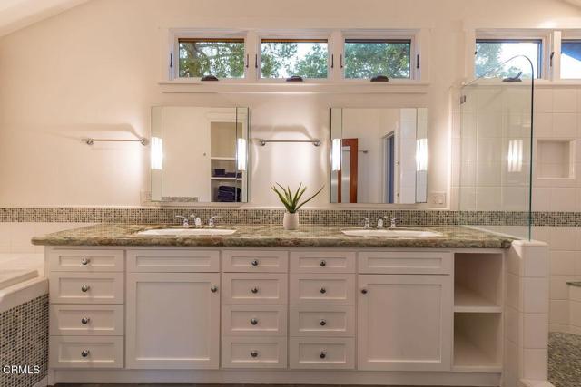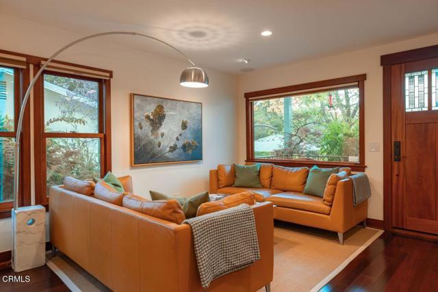 Step into a rare offering where the energy of downtown Ojai meets the quiet majesty of the valley. This Modern Craftsman is more than a home. It is a front row seat to the Topa Topa Mountains, where unobstructed views become part of your daily rhythm and the Pink Moment unfolds in full, uninterrupted splendor. Natural light pours through wood clad Marvin windows, casting warmth across rich mahogany floors and drawing your eye outward to the surrounding landscape. The main level is designed for both ease and connection. A chef's kitchen anchors the space and flows seamlessly into open living areas that invite gathering, conversation, and everyday living at its best. A well-appointed en suite on the main floor offers comfort and flexibility for guests or extended stays. Upstairs, the home shifts into retreat. Beneath vaulted ceilings, the primary suite offers a sense of calm and privacy, complete with a fireplace, spa like bath, and access to outdoor spaces that capture the mountain backdrop. A flexible secondary living area opens to the balcony, where the Topa Topas and Nordhoff Ridge stretch across the horizon, expansive and ever changing with the light. Thoughtfully integrated modern features such as owned solar, EV charging, and high efficiency systems bring a level of sustainability and performance that complements the home's timeless design. Just beyond your door lies one of Ojai's most walkable in town locations. Morning coffee, the Ojai Valley Trail, Libbey Park, the Playhouse, and the Ojai Valley Athletic Club are all moments away, offering a lifestyle rooted in both connection and ease. This is where village life and mountain serenity come together. Rare, grounded, and distinctly Ojai.