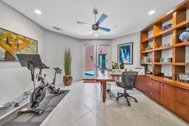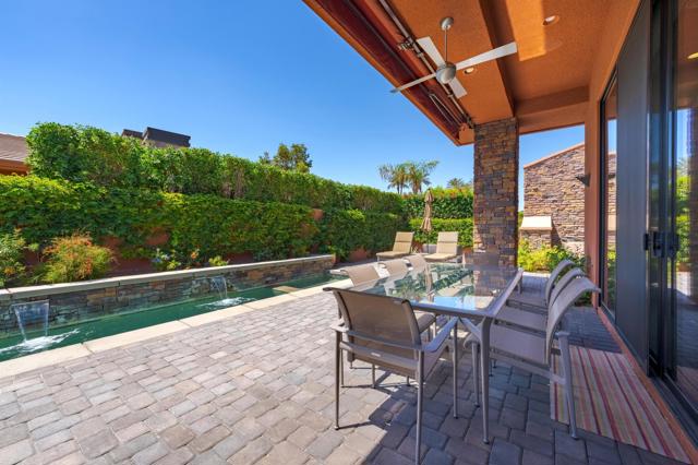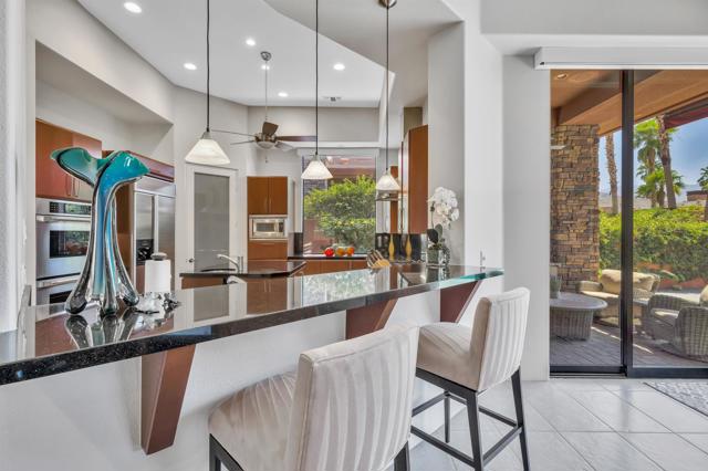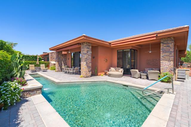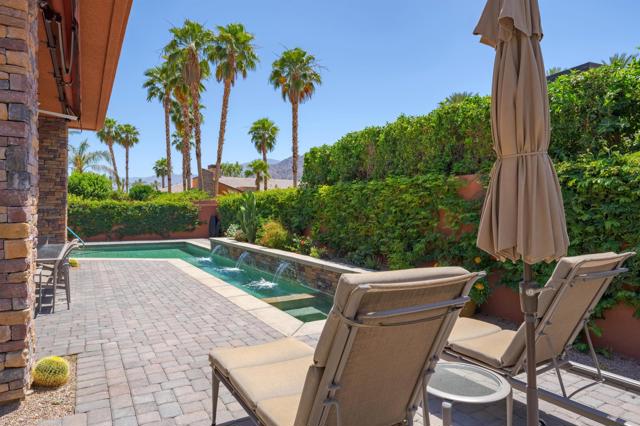 Stunning Ocotillo plan In the highly desirable gated La Quinta community of Palmilla. 3 bedrooms and 3.5 baths plus an office in 2894 square feet. Two bedrooms in the main house with a private guest casita. The contemporary style of this great room plan complements the sleek architecture of these unique Palmilla homes. The back patio area has a wonderful sense of privacy but includes a lovely peek view of the majestic Santa Rosa mountains. Those who love to entertain will appreciate the pebble tec pool and spa. and high-end outdoor kitchen. Decorator finishes throughout. Three air conditioners and two hot water heaters both of which were replaced in 2024. This home is offered furnished per seller's inventory. A special offering in a special community. Don't miss this one.