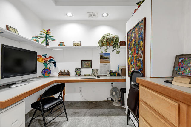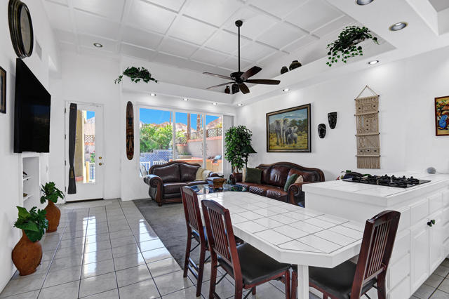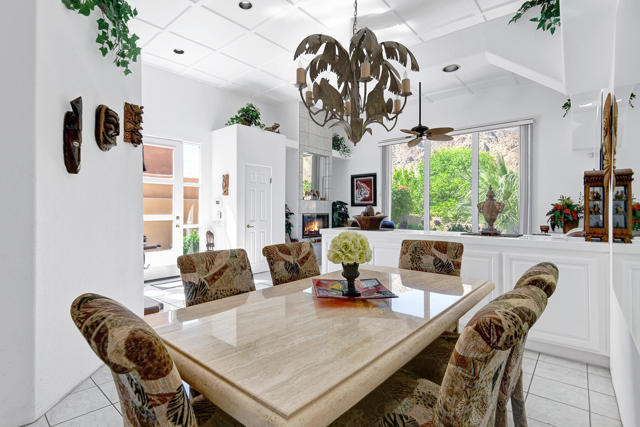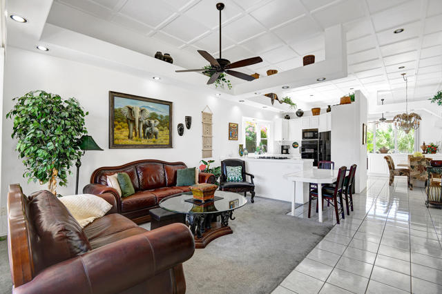 This home has BIG Windows in all the right places! What a rarity to find this ceiling height in La Quinta Cove, and the views don't disappoint! This stunning property invites you in with soaring 12-foot ceilings that create an open, airy vibe, beautifully accented by intricate moulding that adds a touch of timeless elegance. Flooded with natural light, the living room, family room, and the luxurious primary suite all boast oversized windows, offering a seamless connection to the outdoors and making every space feel bright and welcoming. Whether you're hosting lively gatherings or enjoying quiet mornings, these rooms are the perfect backdrop for creating memories. The center of the home allows for three thoughfully placed rooms, two guest bedrooms and an office/den. The Kitchen is marked by beautiful bougainvillea almost pouring through the window over the sink, with an extended counter space for extra dining and gaming opportunities abound. And wait until you see the backyard! Your personal oasis awaits with a sparkling pool, relaxing spa, and a raised tanning deck complete with built-in loungers--ideal for soaking up the sun or stargazing on warm evenings. It's the ultimate retreat for unwinding or entertaining in style. This home has it all: spacious, elegant, and designed for both comfort and fun. You won't find these bones anywhere else in the Cove!