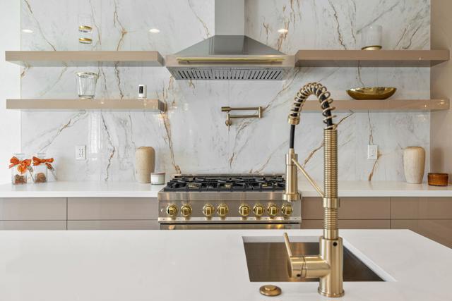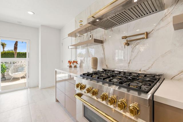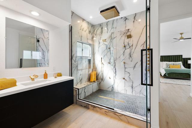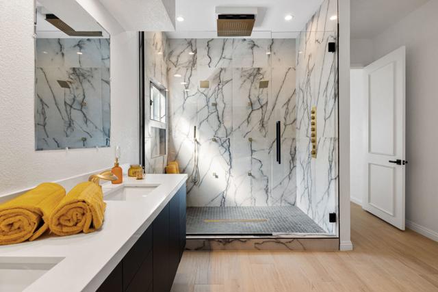 Welcome to this thoughtfully remodeled 3-bedroom, 3.5-bath entertainer's paradise located in the highly sought-after no HOA South Palm Desert neighborhood.This home boasts an open floor plan perfect for both relaxation and entertaining, and it comes equipped with solar panels, offering energy efficiency and reduced utility costs.The chef's dream kitchen is the centerpiece of the home, featuring custom cabinetry, brand new stainless steel appliances with bronze finishes, a large 6-burner stove, electric convection oven, double island with bar seating, and a custom microwave drawer. Direct access to the private, gated front courtyard makes indoor-outdoor entertaining seamless.The home boasts two spacious suites - a luxurious master and a junior suite along with a third bedroom- each featuring its own en suite bathroom. The living room flows effortlessly into the large family room featuring a bar and powder room, creating the perfect space for entertaining. The laundry room is designated to accommodate a stacked washer/dryer unit. The backyard exemplifies the California lifestyle with a putting green, covered patio, and plenty of room for lounging by the pool and spa.Located just minutes from highly rated Washington Charter School, El Paseo shopping, Westfield Mall, Whole Foods, and more, this home truly has it all!