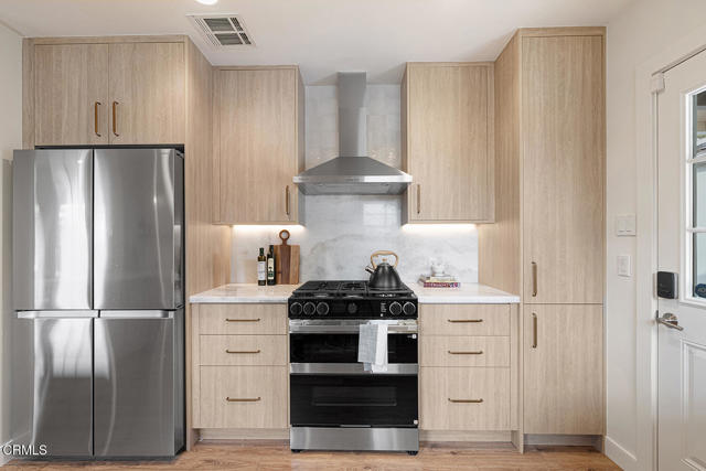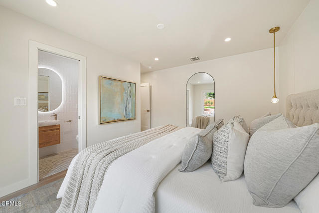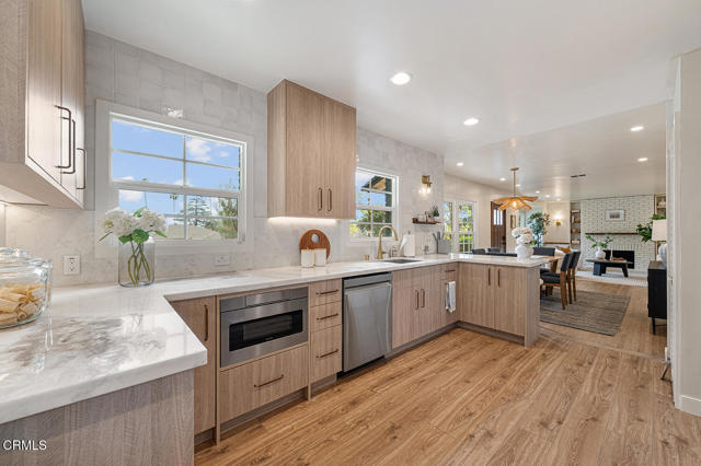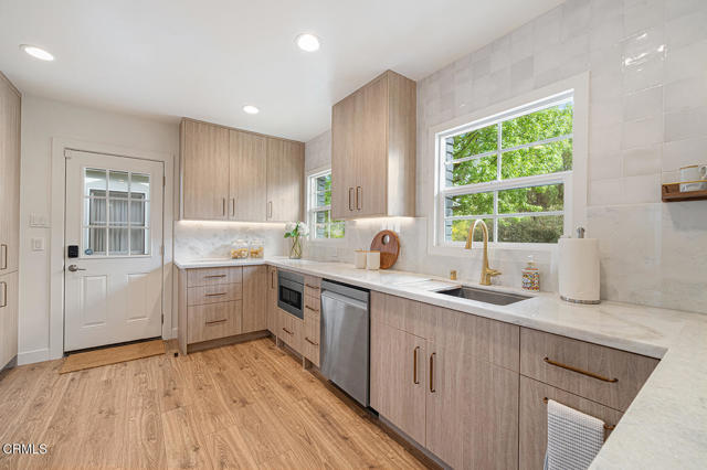 Welcome to this charming Traditional home located on a beautiful, quiet street in Altadena's much sought-after Country Club neighborhood. This is a unique opportunity to purchase a fully renovated 3 bedroom, 2 bath home with a new construction ADU with 2 bedrooms and 2 bathrooms.This property, with its single-level main house, has been thoughtfully updated and is designed to maximize the California indoor/outdoor lifestyle. The main house boasts a functional, open floorplan where the living room, dining area, and kitchen flow seamlessly together. The living room features a fireplace surrounded by built-ins and is filled with light from new windows. The remodeled kitchen is a chef's delight, complete with new cabinets, countertops, tiled walls, recessed lighting, under-cabinet LED lights, and new stainless steel appliances. A stackable washer/dryer is conveniently located in the kitchen area. The primary bedroom features glass sliders leading to the private rear yard and includes a brand new en-suite bathroom with a fully updated shower and toilet. A stylishly remodeled hall bathroom features a wood-look tile floor, a pattern-work tiled shower, and Kohler fixtures. Throughout the home, you'll find new paint, new dual-pane windows, dual-pane sliding doors, and insulation in the walls, floors, and attic. The property also includes a stunning 2-bedroom, 2-bathroom Accessory Dwelling Unit (ADU). The ADU features an open-concept living/dining/kitchen area and wood-look tile flooring throughout. Both bedrooms are bright, with new windows, large wooden-topped window seats, and private en-suite bathrooms with new tile, fixtures, and skylights. The kitchen is equipped with stainless steel appliances, and new cabinets and tile. Additional upgrades include a new sewer line, new tankless water heater, new HVAC for the main house and the ADU. The exterior is just as inviting. The professionally landscaped front yard features drought-tolerant California natives and beautiful paved stone walkways. The expansive, private rear yard is perfect for entertaining and relaxing. A new fence surrounds the yard featuring a gated driveway, brick patio with a pergola, and raised planter beds with irrigation. The home offers views of the San Gabriel mountains is close to plenty of shopping and dining on Lake Avenue. This move-in-ready property offers a fantastic opportunity for multi-generational living or rental income with the separate ADU.