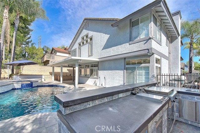 Located in the cul-de-sac of a highly sought-after North Chino Hills neighborhood, this spacious two-story home offers 5 bedrooms, 3 bathrooms, and a large bonus loft. The formal living and dining rooms provide an inviting setting for entertaining, enhanced by high ceilings and abundant natural light. The dine-in kitchen offers generous cabinet and counter space, and the family room—centered around a warm brick fireplace and complemented by a wet bar—creates the perfect space for relaxing. The main floor includes one bedroom, a full bathroom, and a dedicated laundry room. Upstairs, the primary suite features a dual-sink vanity, soaking tub, walk-in shower, and walk-in closet. Three additional bedrooms, a full hall bathroom, and a spacious loft complete the second level. The private backyard is designed for entertaining, showcasing a sparkling pool and spa, a large covered patio, and a built-in BBQ. Conveniently located near parks, a Blue Ribbon–distinguished elementary school, and major shopping and dining destinations, this home offers both comfort and convenience. Don’t miss the opportunity to make this your new dream home.