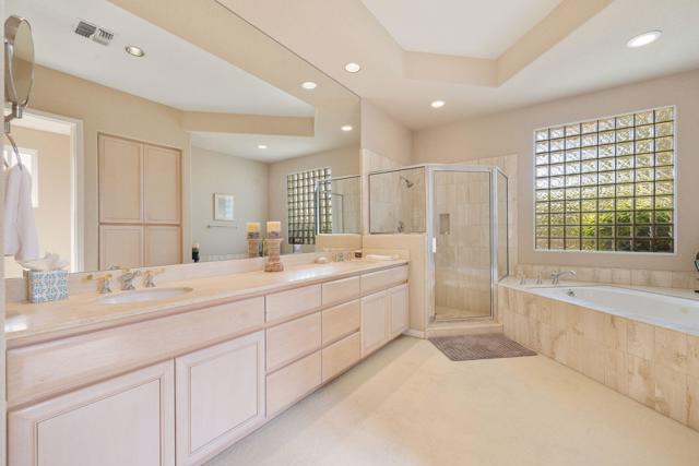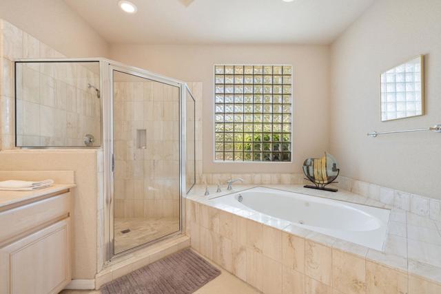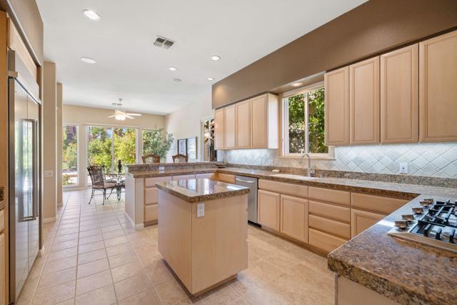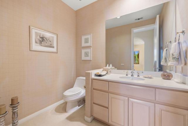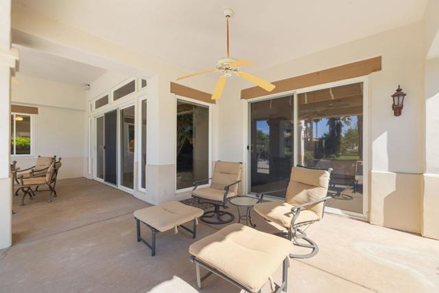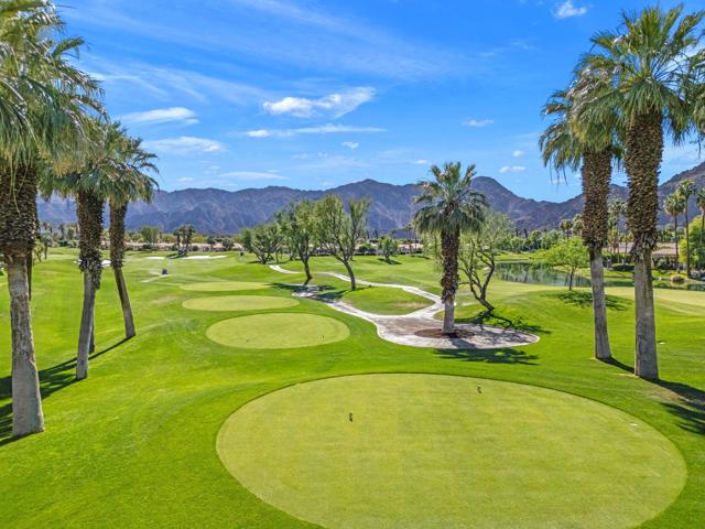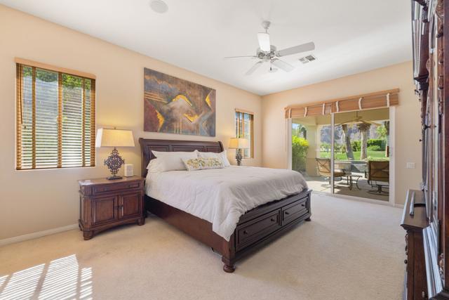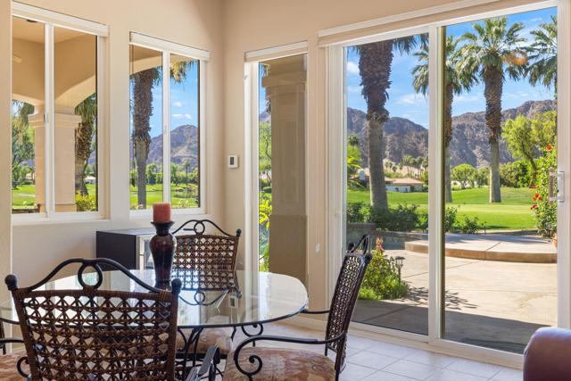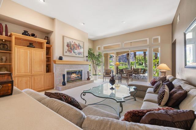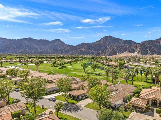 Available for lease in Rancho La Quinta C.C., this beautifully maintained 3-bedroom, 4-bath home is situated on a quiet cul-de-sac on the golf course, offering stunning Santa Rosa Mountain, fairway, and lake views. The property features a private entry courtyard, soaring ceilings, and a light-filled open floor plan. The living room offers a fireplace and custom built-in entertainment center, while the wet bar with granite counters is ideal for entertaining.The spacious primary suite enjoys scenic views, and all bedrooms are ensuite for added privacy. Interior finishes include neutral tile flooring in main areas, carpeted bedrooms, and custom window coverings throughout.Outdoor living is exceptional with a private pool and spa, plus multiple seating areas overlooking the golf course, lake, and mountains--perfect for relaxing or entertaining. Additional highlights include a two-car plus golf cart garage, ample driveway parking, and updated A/C systems and water heater.Offered as a long-term or seasonal lease in one of La Quinta's premier communities