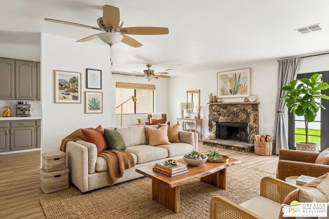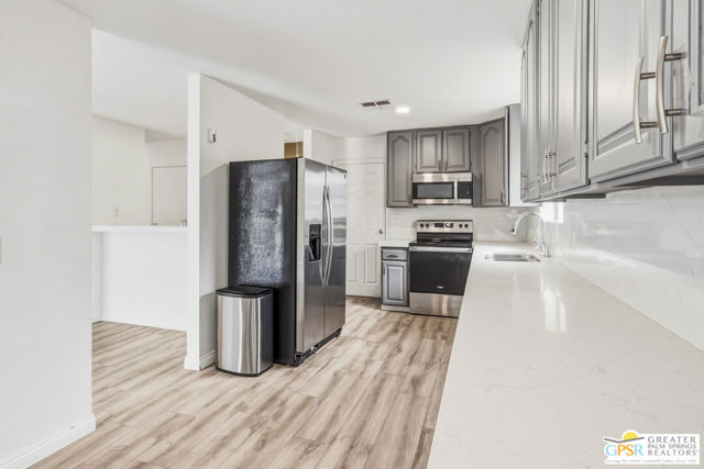 Welcome to 52925 Avenida Vallejo, perfectly located in the desirable mid-Cove area. This charming home offers a seamless blend of comfort and modern style, featuring durable vinyl flooring throughout and elegant quartz countertops in the kitchen, wet bar, and bathrooms. The updated kitchen is equipped with stainless steel appliances, providing both functionality and a sleek, contemporary feel. The bathrooms have been thoughtfully refreshed, adding to the home's move-in-ready appeal. Ideally situated just minutes from Old Town La Quinta, you'll enjoy easy access to local dining, shopping, the popular farmers market, and a variety of scenic hiking trails, perfect for embracing the vibrant desert lifestyle.