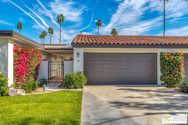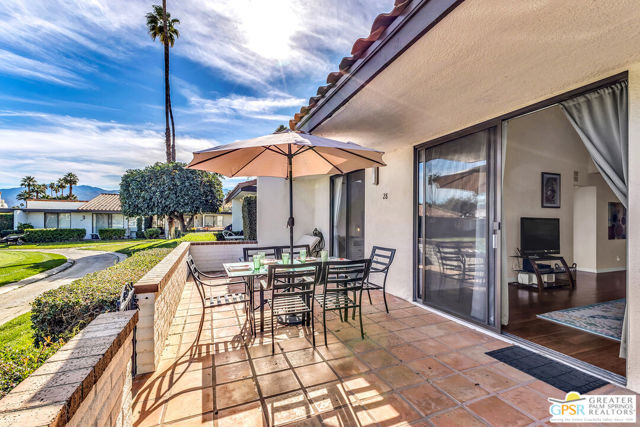 Welcome to 28 Calle Encinitas, a mountain and fairway view home located in the desirable Rancho Las Palmas Country Club. Offering 1,270 square feet of well-proportioned living space, this 2-bedroom, 2-bath residence presents a wonderful opportunity to personalize and add value in a prime location.The thoughtfully designed layout features a spacious living area filled with natural light, hardwood floors, and dual-pane windows. The primary suite includes an ensuite bath, while the second bedroom and bath provide flexibility for guests or a home office. The home has been well cared for and offers a solid foundation for cosmetic updates to reflect your own style and vision.relaxation. Residents of Rancho Las Palmas enjoy resort-style amenities including community pools, spa, clubhouse, and gated security.