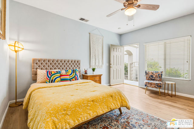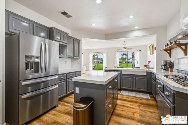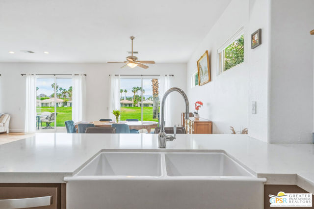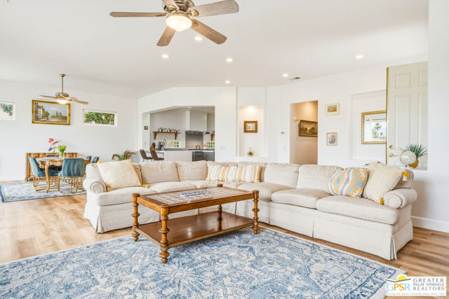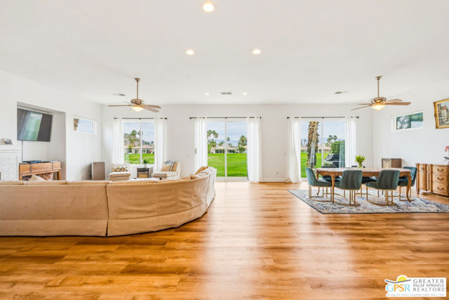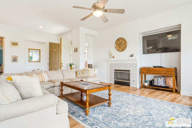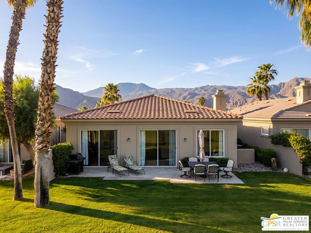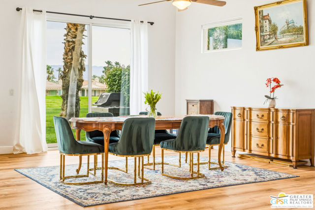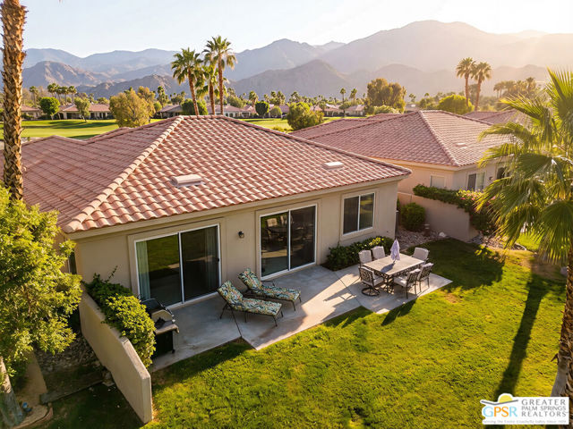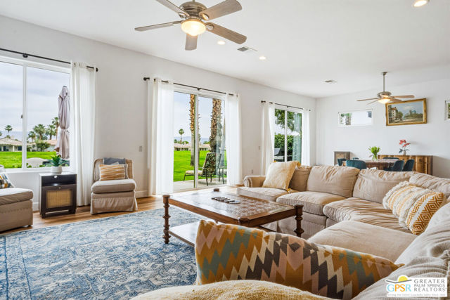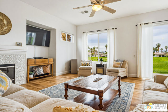 Located in the scenic community of Duna La Quinta, this beautifully appointed 3-bedroom, 3-bath casita-style home offers 2,412 sq. ft. of comfortable desert living. Enter into a light-filled interior designed for both relaxation and entertaining.The expansive great room and dining area showcase stunning mountain and fairway views, complemented by luxury vinyl wood-look flooring, a cozy fireplace, a built-in entertainment niche, and dual sliding doors that open to the back patio. The updated kitchen is a chef's delight, featuring quartz countertops, a center island, stainless steel appliances, and a 5-burner gas stove. The spacious primary suite is a private retreat, accessed through double doors and offering direct outdoor access. The en-suite bath includes dual vanities, a soaking tub, a shower, and a generous walk-in closet. Guests will appreciate the attached casita with its own private entrance, complete with a serving bar, separate bath, and ample closet space, which is ideal for visitors or extended stays. Step outside to your back patio and unwind while taking in sweeping golf course views and breathtaking desert scenery. Residents of Duna La Quinta enjoy a gated community with pools and spas, greenbelts, and a dog park. Conveniently located near Old Town La Quinta, you'll be just minutes from world-class dining, shopping, entertainment, hiking, golf, and tennis.