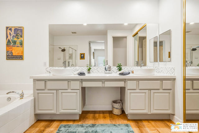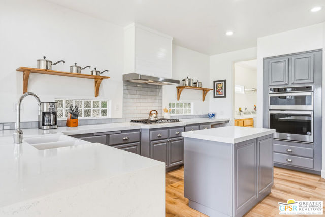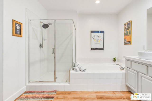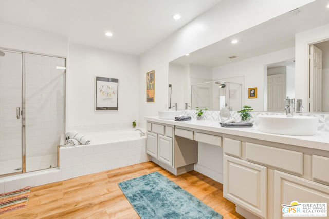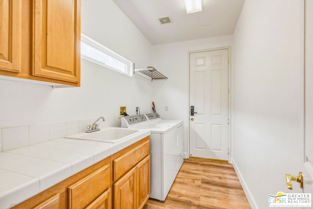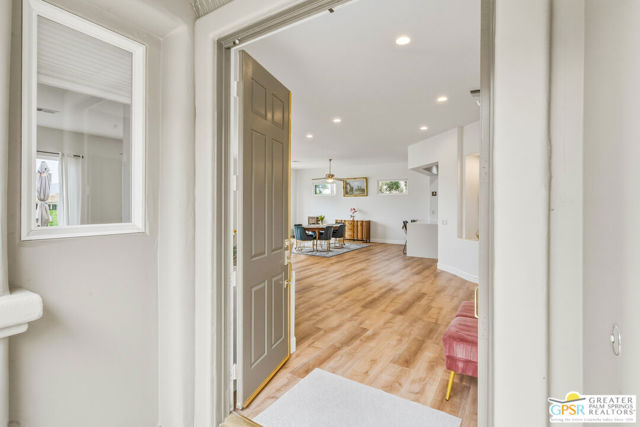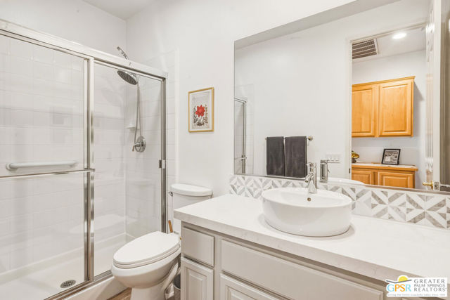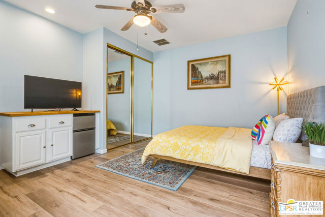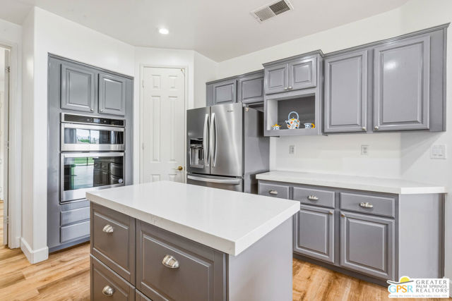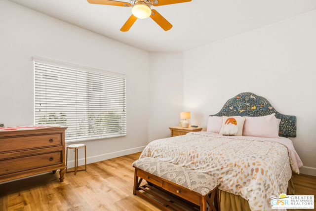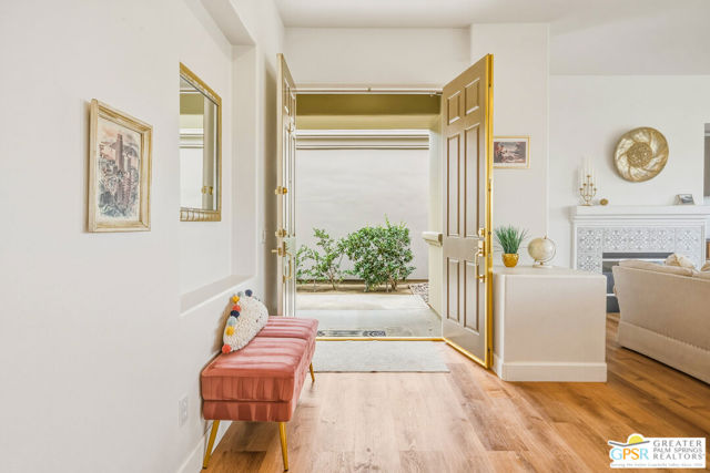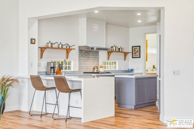 Located in the scenic community of Duna La Quinta, this beautifully appointed 3-bedroom, 3-bath casita-style home offers 2,412 sq. ft. of comfortable desert living. Enter into a light-filled interior designed for both relaxation and entertaining.The expansive great room and dining area showcase stunning mountain and fairway views, complemented by luxury vinyl wood-look flooring, a cozy fireplace, a built-in entertainment niche, and dual sliding doors that open to the back patio. The updated kitchen is a chef's delight, featuring quartz countertops, a center island, stainless steel appliances, and a 5-burner gas stove. The spacious primary suite is a private retreat, accessed through double doors and offering direct outdoor access. The en-suite bath includes dual vanities, a soaking tub, a shower, and a generous walk-in closet. Guests will appreciate the attached casita with its own private entrance, complete with a serving bar, separate bath, and ample closet space, which is ideal for visitors or extended stays. Step outside to your back patio and unwind while taking in sweeping golf course views and breathtaking desert scenery. Residents of Duna La Quinta enjoy a gated community with pools and spas, greenbelts, and a dog park. Conveniently located near Old Town La Quinta, you'll be just minutes from world-class dining, shopping, entertainment, hiking, golf, and tennis.