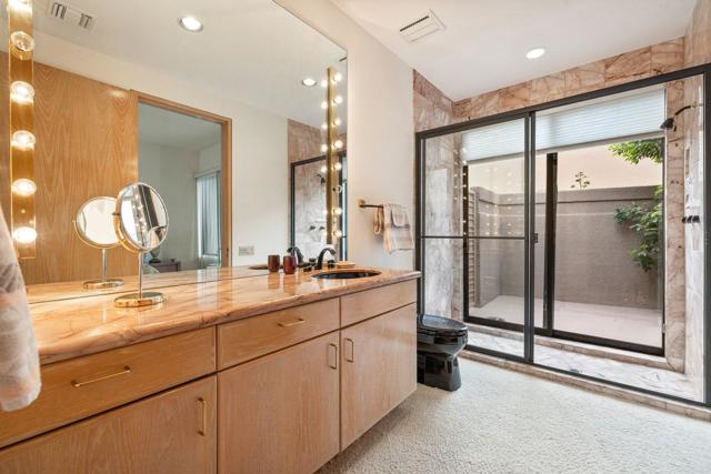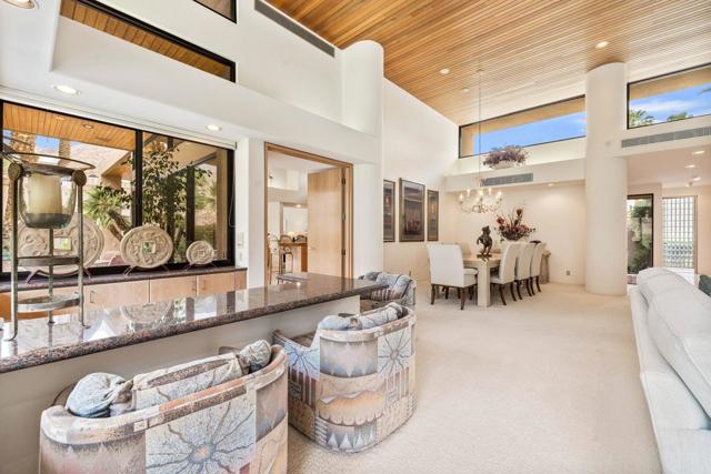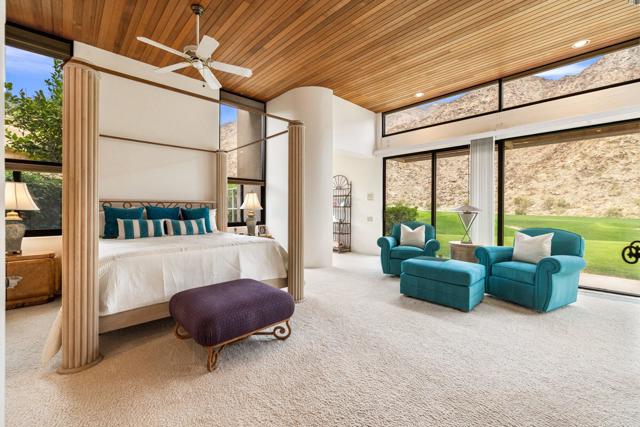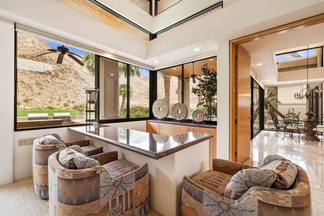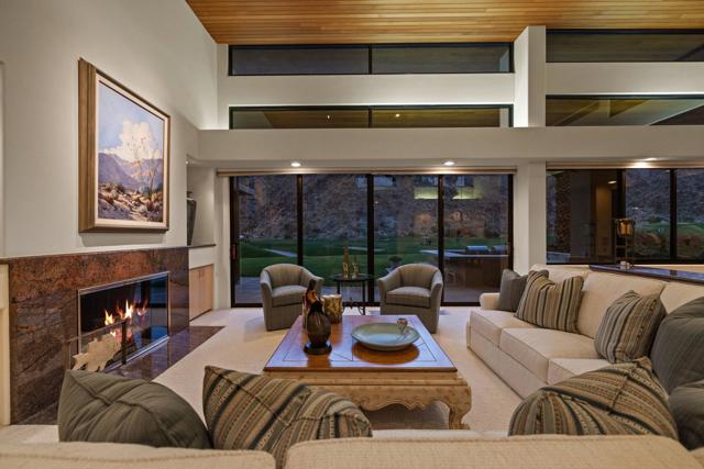 Set within the exclusive gated community of The Enclave, this remarkable residence captures the essence of desert luxury with a sense of quiet retreat and elevated design. Framed by a private cove, the home opens to dramatic, sweeping mountain views that shift in color and mood throughout the day, while fairway vistas add a layer of serene, open green space.The architecture is both striking and inviting, blending stylistic elements with a relaxed, livable feel. Grand ceilings create an immediate sense of openness, while clerestory windows invite in soft, natural light, casting an ever-changing glow across the interiors. The atmosphere is one of calm sophistication--equally suited for entertaining or unwinding in complete privacy.The primary suite is a true sanctuary, generously scaled and thoughtfully designed, with a versatile adjoining space ideal for a private office, fitness area, or quiet retreat. Every corner of the home feels intentional, balancing spaciousness with comfort.A private interior stairway leads to a rooftop deck--an elevated escape where panoramic views take center stage. Whether enjoying sunrise over the mountains or the stillness of desert evenings under the stars, this space offers a rare and unforgettable perspective.This is more than a home--it's a setting, a feeling, and a lifestyle defined by beauty, privacy, and effortless elegance.