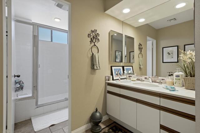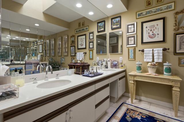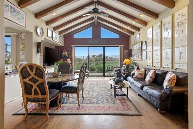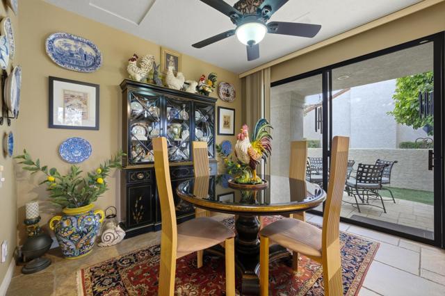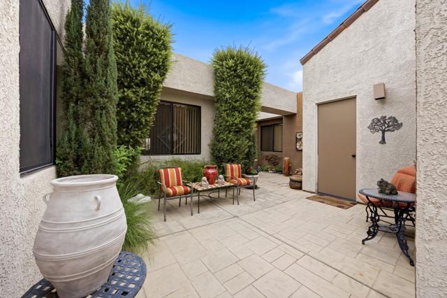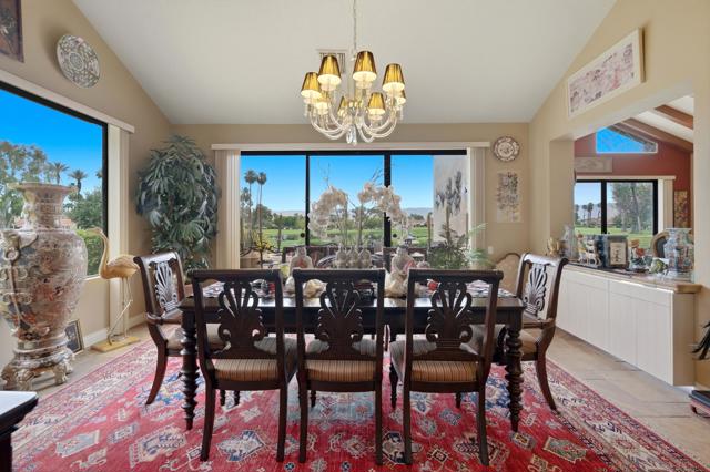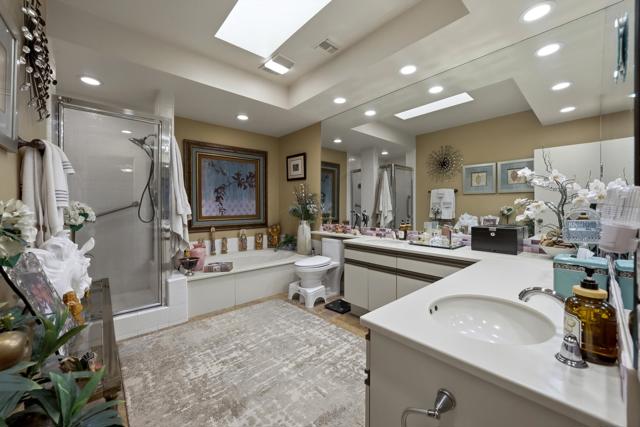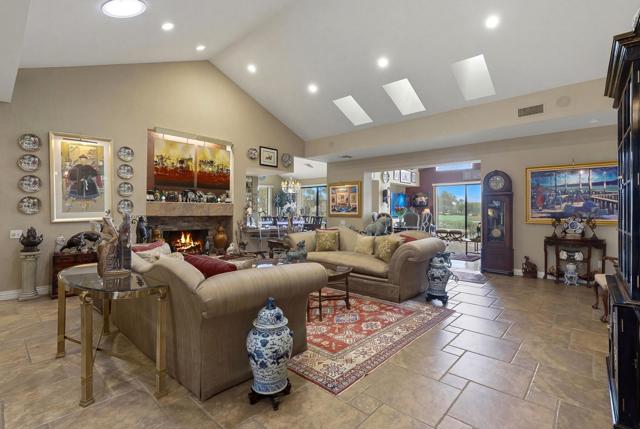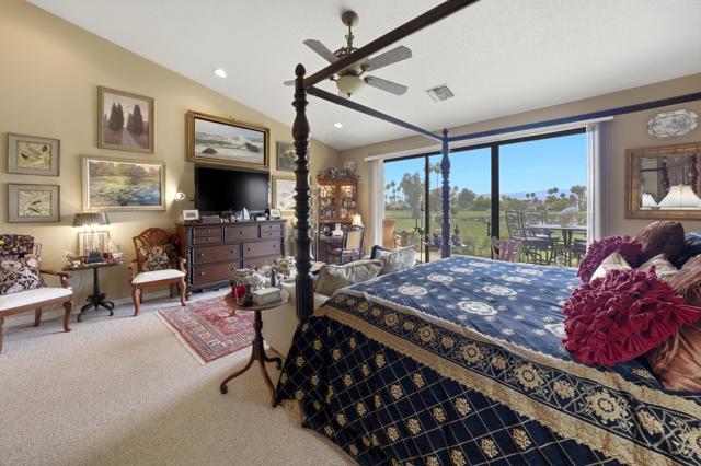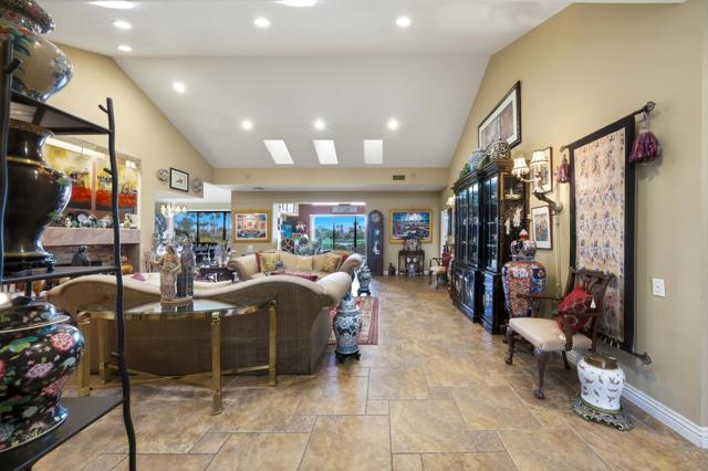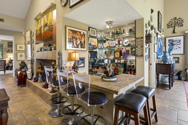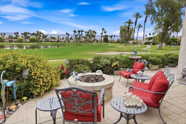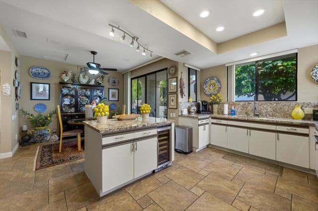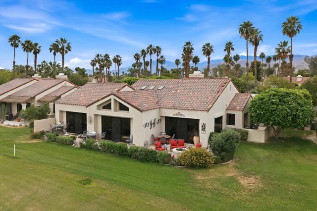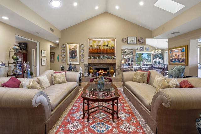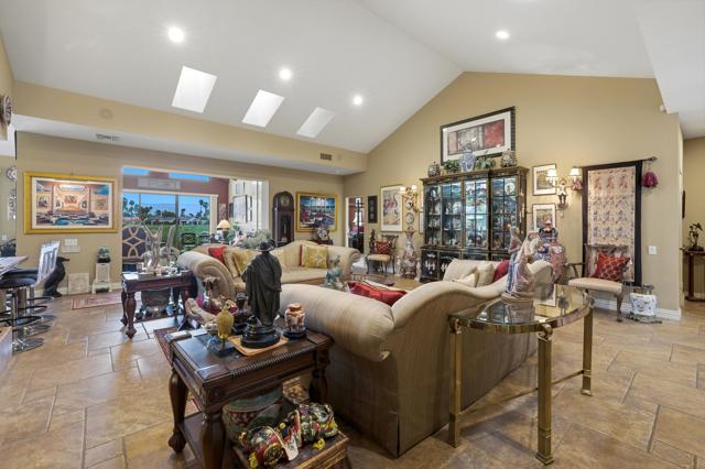 This exceptional, custom freestanding home truly stands out as one of a kind. Custom ordered design includes the addition of a large family media room with beamed ceiling, built-in cabinets and clerestory windows. Spacious inviting living room features, custom glass entry doors, Versailles pattern porcelain tile flooring, vaulted ceilings, stacked stone fireplace and wet bar with wine cooler and three functional skylights. The spacious 3,616 sq ft interior offers four generous bedrooms, three full ensuite bathrooms and one three-quarter bath with access to fourth bedroom/office. Walls of windows showcase expansive views of the golf course, lake and mountains. Eat-in Kitchen features granite counters, Island, Wolfe and Subzero appliances, generous pantry, stainless steel sink, wine cooler and direct access to relaxing terrace with BBQ, fruit trees. Formal dining room offers delightful double views and picture window with outdoor security screen. Huge main bedroom suite has vaulted ceilings, walls of windows, walk-in closet, ensuite bathroom with separate shower & large-jetted bathtub, double sink vanity and separate water closet. Largest home in Vista del Sol, located on a quiet cul-de-sac, offering expansive views of the golf course, lake, and mountains. Enter through a large private courtyard patio. Generous size two car garage with golf cart garage and storage closet. Other features include Security system, LED type recessed lighting, double paned windows with new screens throughout, dual HVAC systems, dual water heaters, Maytag Nautilus washer/dryer. Natural Gas fire pit, perfect year-round entertaining outdoor and indoor areas holiday celebrations, it works fantastically for large gatherings. Includes all high-end outdoor patio furniture and deluxe BBQ. Automatic watering systems. Beautiful easily accessible pool/spa areas nearby. Three guest parking areas conveniently located nearby