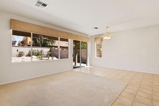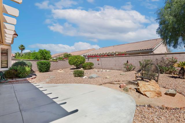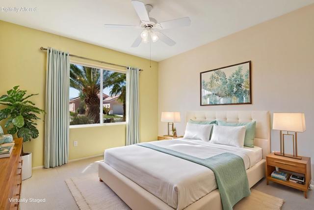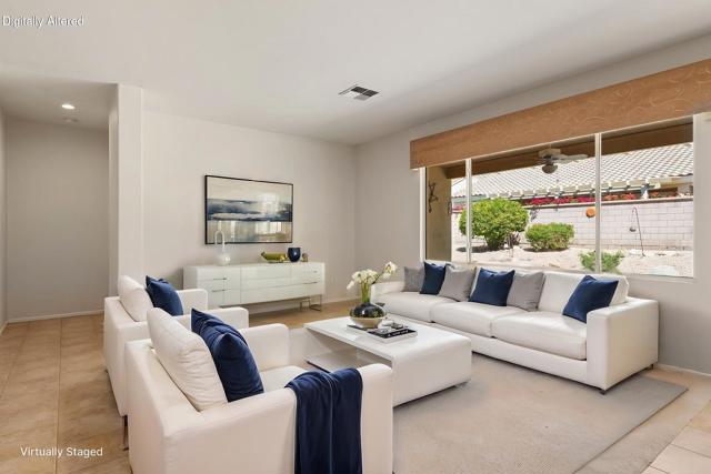 Don't miss one of the best values in the Sun City Palm Desert 55+ resort community--This well-maintained St Maarten 2-bedroom, 2-bath plus den home offers approximately 1,578 sq ft of comfortable living space and presents an exceptional opportunity for buyers looking to add their own personal touch. Pride of ownership is evident throughout, with the home in exceptionally clean condition--a perfect canvas for customization while being completely move-in ready featuring a bright living and dining area, spacious kitchen with island and pantry, a private primary suite, along with a versatile guest room and large den. Situated on a quiet street, the property includes low-maintenance mature desert landscaping and east facing backyard. Thoughtfully priced to reflect its original finishes, this home offers outstanding value within the community--perfect for buyers seeking affordability, investment potential, or the chance to update at their own pace. Enjoy all that Sun City Palm Desert has to offer, including golf, pools, fitness centers, and a vibrant social lifestyle just minutes from shopping and dining. Some rooms have been digitally staged.