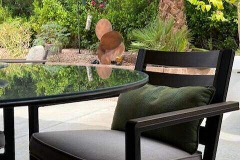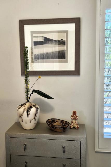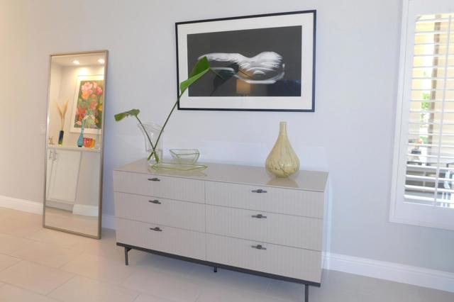 Available May 1st, 2026. Indulge in refined desert living with this newly renovated, impeccably furnished seasonal residence in the guard-gated Sun City Palm Desert Country Club. Designed for the sophisticated tenant, this beautiful home offers 2 bedrooms and 2 baths, styled to exceptional standards.The interiors feature iconic furnishings from Eames, Vanguard, and Bernhardt, complemented by a newly painted palette, contemporary chandeliers, and an impressive private art collection. Every detail reflects comfort, style, and thoughtful design.Retreat into the main bedroom suite featuring a soaking tub, Italian linens, upholstered reading chair, and armoire that enhances the seamless resort experience.In addition to the main living spaces, the home offers a dedicated art studio and remote work office, complete with complimentary art supplies and office essentials -- perfect for creativity, productivity, or both.The open concept living and dining areas offer entertaining flow, while the gourmet kitchen is outfitted with new appliances and fully stocked for culinary pursuits.Outdoor Living: Step into a private desert retreat for outdoor living. The private backyard features tailored furniture, a fire pit, stone coffee table, and a bronze bistro table, all situated within a designed hardscape. Surrounded by a manicured living desert garden and sculptures, the space offers multiple areas for lounging, dining, and relaxing.Simply bring your personal belongings -- everything else is thoughtfully prepared for your relaxed resort experience. Check out the amenities at Sun City Country Club here: https://www.scpdca.com/Pricing: May - October: $4500 per monthNov - Dec: $5000 per monthJan. - April: $5500Deposit: $4000. Cleaning Fee: $350. Utilities are capped at $150/Mo.