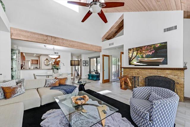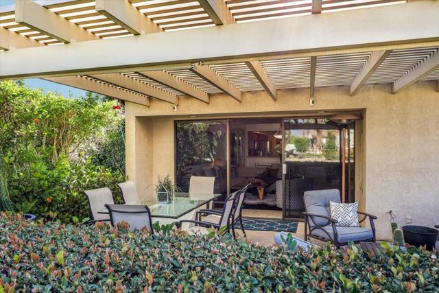 As if this lux and pristine Rancho Mirage condominium were not enticing enough, the seller will pay its lease extension and transfer fees upon close of escrow! The current lease at the exclusive guard-gated Mission Hills Country Club expires in 2054 and the extension will continue it to 2121. This is an extraordinary opportunity at the prestigious community, and it complements the relaxed yet stylish aesthetic of this open and light single-level home. Fully furnished and ready for move-in, the two-bedroom, two-bath design offers enviable privacy in a gated entry courtyard with shaded area and ample room for entertaining. The covered backyard patio also welcomes relaxation and carefree get-togethers, and all landscaping beyond the property is cared for by the HOA...all you have to do is kick back and enjoy the outstanding desert lifestyle that many aspire to. Approximately 1,535 square feet, the home is impeccably maintained and exceptionally updated. Enjoy tile flooring throughout, custom stained-wood Shaker cabinetry in the kitchen and baths, and vaulted open-beam wood ceilings in most living areas. Two sidelights frame the custom wood entry door, which opens to a floorplan that carefully balances public and private spaces. A spacious dining room opens to the kitchen and a large living room with clerestory windows, fireplace, wet bar and glass door to the rear patio. Completely remodeled, the kitchen shines with granite countertops, a pass-thru bar to the dining room, generous cabinet space and stainless steel appliances. With windows on two sides, direct access to the courtyard, and a high ceiling, the primary suite reveals an exquisite, fireplace-warmed retreat from the world. Translucent French doors open to the suite, which displays two closets with mirrored wardrobe doors, and a large remodeled bath with custom cabinets, quartz countertops, two vanities with picture-frame mirrors, and a shower with custom tile and frameless-glass enclosure. The secondary suite also has courtyard access and hosts a walk-in closet. Upgrades are led by plantation shutters, designer lighting, ceiling fans, interior laundry and a detached two-car garage.
