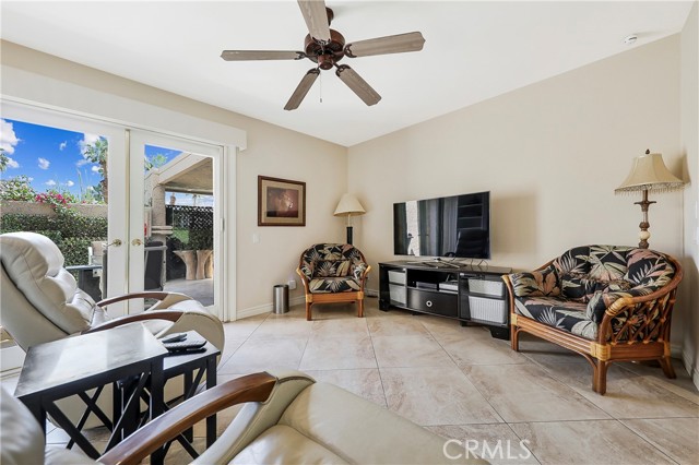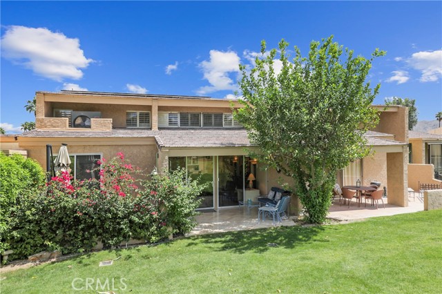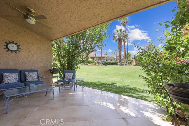 Welcome to this beautifully remodeled condo located in the prestigious Ironwood Country Club. Offering 2,179 square feet of thoughtfully designed living space, this exceptional residence features three spacious bedrooms and three bathrooms, including two luxurious primary suites—ideal for guests or multi-generational living. The well-designed floor plan seamlessly blends comfort and functionality, enhanced by abundant natural light and stylish upgrades throughout. Enjoy the best of indoor-outdoor living with three private patios, including an expansive enclosed/covered patio perfect for relaxing or entertaining year-round. Recent improvements include a new air conditioning system installed in 2024 and a solar energy system with 16 panels, Tesla backup battery in garage, also added in 2024—providing both efficiency and modern convenience. The home is offered furnished, making it truly move-in ready. Ironwood Country Club offers an exceptional lifestyle with two championship 18-hole golf courses, practice facilities, and a vibrant clubhouse featuring both casual and fine dining, along with a full calendar of social activities. Membership is available by application but is not required for ownership. Close to the shops the award-winning restaurants on El Paseo and The Living Desert is right down the street. Buyer to verify: All information is deemed reliable but not guaranteed. Buyers are advised to independently verify all property details, including square footage, improvements, permits, HOA information, club membership, and any other material facts. Neither seller nor broker guarantees accuracy.