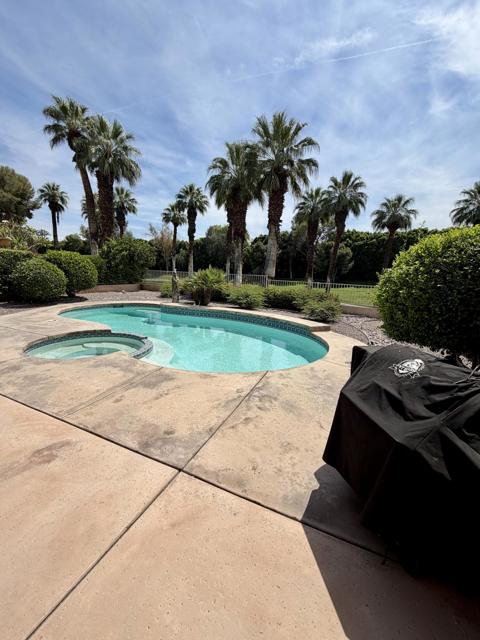Welcome to Rancho Mirage Country Club, where desert living meets resort-style elegance. This spacious 3-bedroom, 3-bath residence includes a private casita--ideal for guests, a home office, or multi-generational living. Perfectly positioned to capture a beautiful parkway view, the home features a private pool and spa, creating a serene outdoor retreat for relaxation or entertaining.Inside, the main residence offers a generously sized primary suite with a walk-in closet, while an existing office provides flexibility to easily convert into an additional bedroom. Expansive living and dining areas flow seamlessly together, offering the perfect setting for gatherings. The kitchen is thoughtfully designed with abundant cabinetry and a dedicated workspace, ideal for today's lifestyle needs.Residents of this guard-gated community enjoy access to several pools and spas. The HOA provides outstanding value, covering cable TV, internet, exterior maintenance (including roof), beautifully maintained grounds, trash service, and 24/7 security patrol. Earthquake insurance for shared structures is also included.This is an incredible opportunity to customize and update a well-located home with outstanding views. Priced to sell and offered AS IS--don't miss your chance to make it your own.