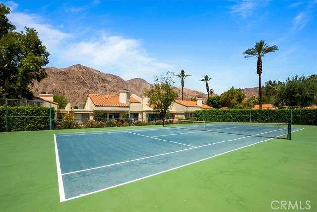 Recently remodeled in Santa Rosa Cove - La Quinta Hideaway 2 Bedroom suites, 2 Large remodeled baths. Master bedroom king, 2nd bedroom king. spacious, bright and airy Anacapa floor plan with vaulted ceilings and fireplace at approx. 1389 sqft. Kitchen nook with views of courtyard, enjoy breakfast and the desert morning light. Master opens to patio, pool, tennis court, and mountains. All the comforts of home including 2-car garage, large closets, dressers, 3 mounted flat-screen TVs, cable/wifi, wetbar, al fresco dining, and BBQ gas grill. Fully stocked Chef’s kitchen with stainless steel appliances, indoor/outdoor serveware, all utensils, pots/pans and pantry. Laundry room located inside, fresh linens and towels, and bath amenities. Pool, spa, and tennis courts at your back door. In close proximity to the historic La Quinta Resort with full access to restaurants, shops, resort spa, fitness center, tennis, and golf right down the street. Other amenities include: Private patio, solar paid for, dule pane windows, 2 car garage, laundry room, 3 mounted smart tv’s, bbq, stainless steel appliances, fireplace, fresh linens and towels, pool, spa, tennis courts, patio furniture, courtyard, vaulted ceilings, updated HVAC, low HOA’s