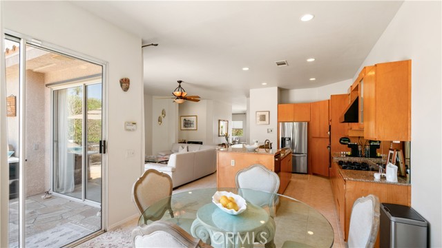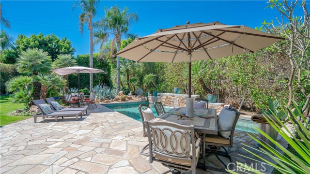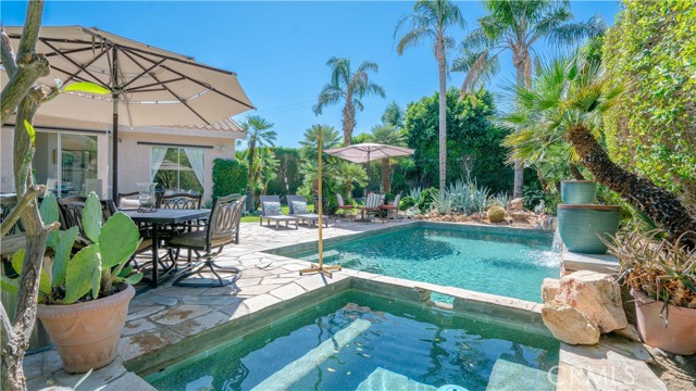 Located in a highly sought-after Palm desert neighborhood, this beautifully maintained home is just minutes from world-class golf courses, upscale shopping along El Paseo, and exceptional dining. It offers the perfect secluded setting to relax, recharge, and experience the very best of Palm Desert. Thoughtfully designed for both entertaining and everyday comfort, the home welcomes you with an elegant entry foyer featuring crema Marfil marble and natural stone finishes throughout. The interior is adorned with upscale designer furnishings, creating a refined yet inviting atmosphere that defines the ideal desert retreat. Step outside to a spacious outdoor living area complete with a PebbleTec pool and spa, water features, lush landscaping, a manicured greenbelt lawn, and ample patio seating and lounge spaces. This serene backyard oasis is perfect for enjoying the natural beauty of the desert or hosting guests in style. Inside, the home boasts an open, airy layout filled with natural light and expansive desert views. The well-appointed kitchen features stone countertops, generous storage, and is fully equipped for all your culinary needs. A formal dining area with seating for eight provides the perfect space for gathering with family and friends. The seamless flow between the kitchen and living area, formal living and bar creates a warm and inviting atmosphere, highlighted by a cozy fireplace and stunning mountain views. The primary suite has been beautifully remodeled and features a queen-sized bed with luxurious linens, along with a fully upgraded en-suite bathroom. Three additional bedrooms offer comfortable accommodations, each with sitting areas and flat-screen TVs. Every bedroom provides direct outdoor access, embracing the indoor-outdoor desert lifestyle. Full time rental is available as well as seasonal renting. Call for seasonal rates.