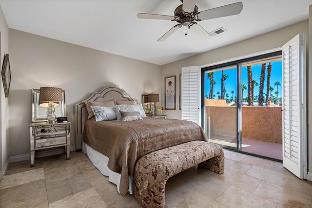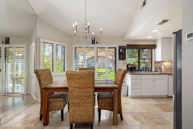 Welcome to this 1,139 sq. ft., 2-bedroom, 2-bath condo, offering a thoughtful blend of style, functionality, and value in the desirable Oasis Country Club. The private entry courtyard sets the tone with a calm, inviting space, perfect for morning coffee or evening relaxation. As you step inside, the bright living room welcomes you with vaulted ceilings, a cozy fireplace, and abundant natural light that enhances the open, airy atmosphere. Just beyond, the updated kitchen connects seamlessly to the dining area, where sliding doors open to lush green common area, your private patio, and a BBQ, creating an effortless indoor-outdoor living experience.Thoughtfully designed, the main level also features a spacious guest bedroom off the foyer, complete with sliding access to the shared patio. This flexible space works beautifully for visitors, a home office, or a quiet retreat. A full bathroom and conveniently located laundry closet complete the first floor.Upstairs, the private primary suite serves as your personal sanctuary. Step onto the balcony to unwind and take in the stunning desert sunsets that define desert living.For added convenience, this condo includes an attached garage.Oasis Country Club offers an exceptional lifestyle filled with resort-style amenities and breathtaking surroundings. Residents enjoy an 18-hole golf course with 22 sparkling lakes, multiple pools and spas, pickleball and tennis courts, a putting course, and a variety of fitness and social activities. The community also features convenient on-site dining at the newly renovated Grille, a dog park, card room, lending library, and beautifully maintained grounds framed by mountain and fairway views. For homeowners, Oasis Country Club delivers not only comfort and recreation, but a vibrant, welcoming community that feels like a true desert retreat.Oasis Country Club isn't just a place to live, it's a lifestyle. Come tour this desert gem and experience why so many are proud to call it home.
