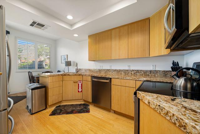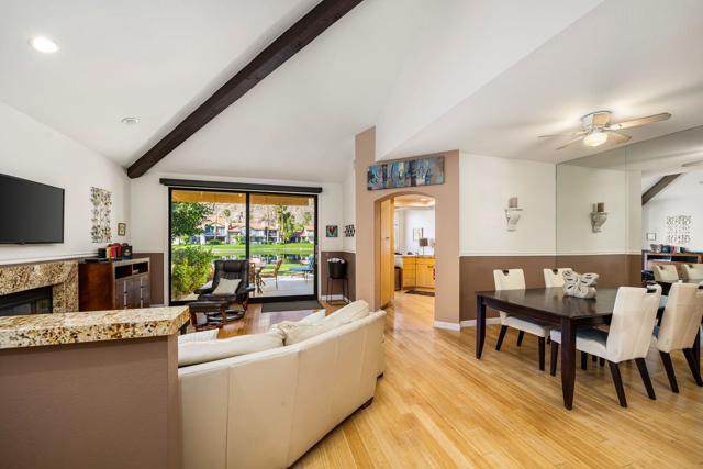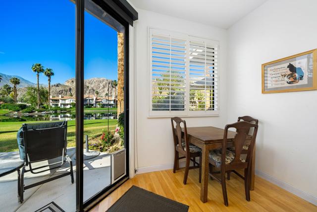 Rare opportunity to own a single-story end unit within the prestigious PGA West Palmer Private Community. Presented fully furnished, this two-bedroom, two-bath home plus a versatile office or den captures stunning views of the surrounding mountains and nearby lake. Inside, a light-filled, meticulously cared-for interior has been thoughtfully enhanced to combine style with everyday comfort. Notable features include rich wood floors, a beautifully renovated kitchen outfitted with stainless steel appliances, sleek cabinetry, and granite surfaces, along with a spacious primary retreat offering dual sinks, a redesigned shower, and a generous walk-in closet. Expansive glass sliders frame scenic surroundings while creating a seamless connection between interior spaces and outdoor relaxation--ideal for taking in the beautiful western sunsets. An outstanding offering for those seeking a refined, resort-inspired lifestyle in one of PGA West's most desirable communities.