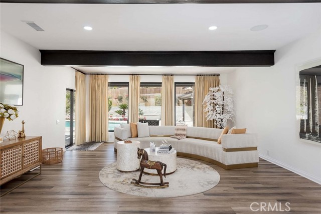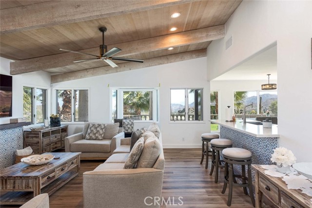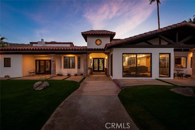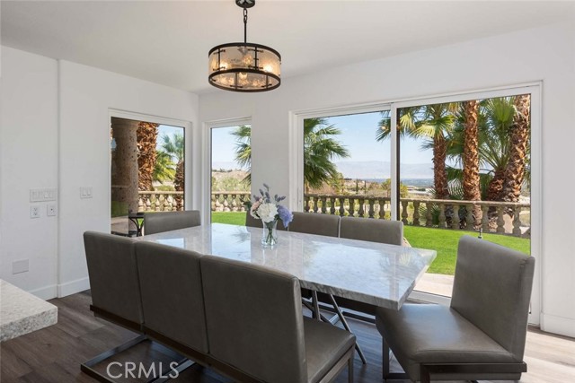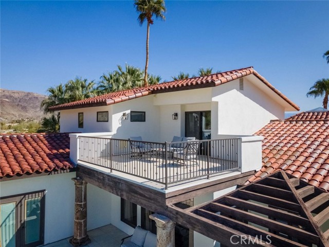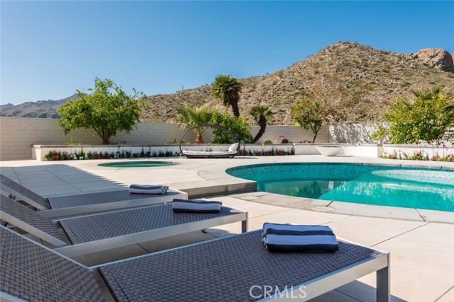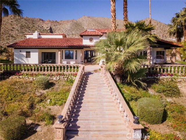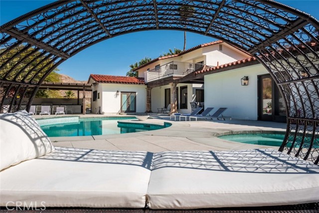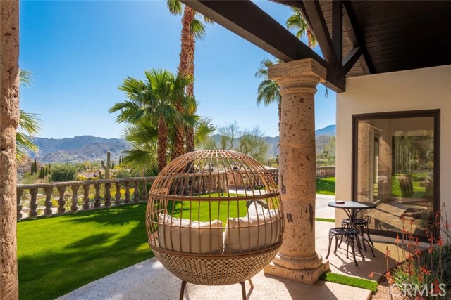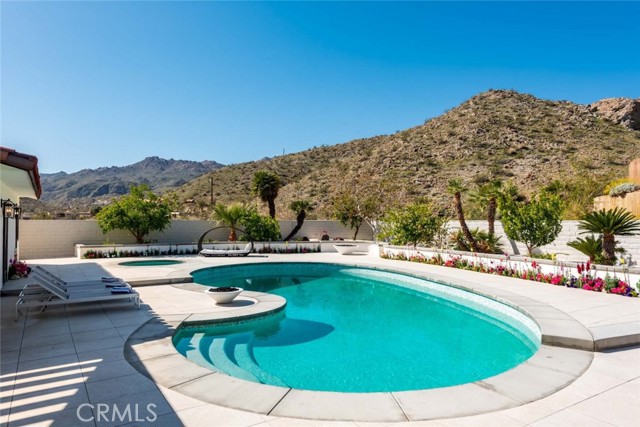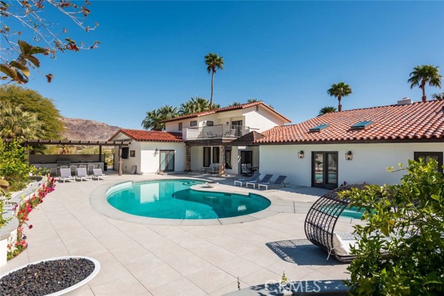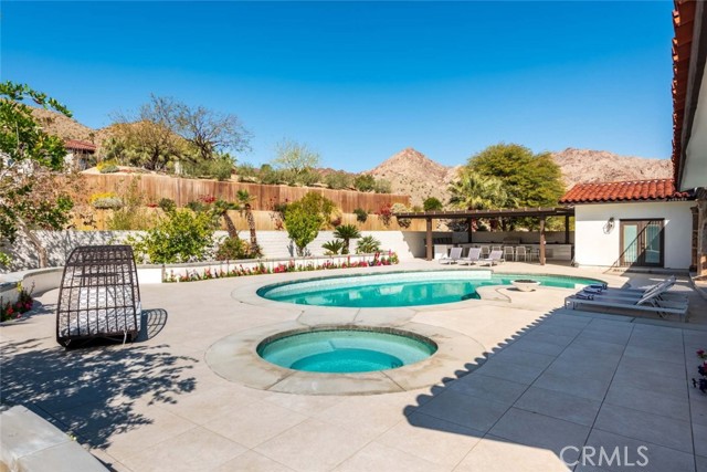 Welcome to this stunning gated estate located in the heart of Palm Desert, offering 4,663 square feet of refined desert living. This exceptional 5-bedroom, 4-bathroom residence combines timeless architecture with modern comfort, all set against a picturesque backdrop of mountain and valley views. A private gated entrance leads to an impressive arrival, where lush landscaping, mature palm trees, and elegant hardscape create a true sense of retreat. Inside, the home features a spacious open-concept layout with expansive living areas, high ceilings, and abundant natural light throughout. The thoughtfully designed floor plan seamlessly connects indoor and outdoor living spaces, ideal for both everyday living and entertaining. The gourmet kitchen is equipped with a large center island, ample cabinetry, and premium finishes, opening to a welcoming dining area with scenic views. The living room offers a warm yet sophisticated atmosphere, complete with designer touches and direct access to the outdoor grounds. The primary suite is generously sized, featuring a spa-inspired bathroom and private access to outdoor spaces. Additional bedrooms are well-appointed, offering flexibility for guests, office use, or multi-generational living. The backyard is a true resort-style oasis, featuring a sparkling pool and spa, expansive patio areas, and beautifully landscaped grounds, perfect for relaxing or hosting gatherings while enjoying the serene desert surroundings. Additional highlights include an attached garage, gated privacy, and a prime location close to shopping, dining, and world-class golf. A rare opportunity to own a private desert retreat with space, style, and breathtaking views.