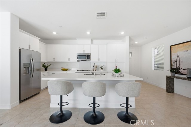 MOVE - IN ready.. MODERN 2023 built home.. PAID SOLAR.. located in the sought after community of University Park.. 3 bedroom + loft / 2 bath / 1878 sf.. perfect for both full time living and 2ND HOME enjoyment.. this south / west facing home will delight u with sunlight and it's open floorplan.. gracious entry leads into a kitchen, family room and dinning room open layout.. CHEF'S kitchen w/ extra large island, plenty of cabinet storage, stainless steel appliances, recessed lighting and modern fixtures.. all bedrooms are up.. primary suite offers a SPA like bathroom w/dual sinks and walk - in closet.. 2 other bedrooms are spacious and well appointed.. upstairs loft will make a perfect sitting room, office or playroom for the kids.. backyard has been professionally landscaped and updated w/ low maintenance turf creating a perfect setting for entertaining and relaxing.. community offers resort style amenities including pool, spa, park, lounging area, BBQ area, and dog park.. LOW HOA.. just minutes from Acrisure Arena, University Village and El Paseo.. this house is a must see..