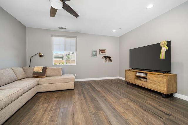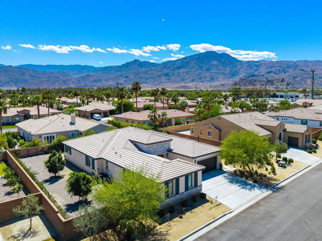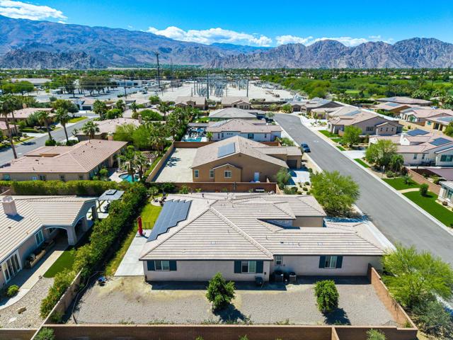 Experience elevated desert living in this beautifully upgraded Pomona plan, where modern ranch design meets a private La Quinta oasis. Situated on over a quarter-acre lot, this home offers exceptional space, privacy, and expansive side yards--perfect for entertaining, recreation, or future enhancements.At the heart of the home is a stunning, modern chef-inspired kitchen featuring an oversized center island, sleek quartz countertops, and a generous walk-in pantry. The open-concept design flows effortlessly into the expansive great room and dining area, creating an ideal setting for both everyday living and upscale entertaining.The primary suite is a true retreat, complete with a spa-like bath and two spacious walk-in closets. Three additional bedrooms, along with a private office, provide flexibility for guests, family, or a home office.Step outside to your own private sanctuary--an entertainer's dream--highlighted by a sparkling custom-shaped pool, a spacious covered patio, and beautifully curated desert landscaping that enhances both serenity and style.Located within a gated community, this home also features a three-car garage with a private side-entry bay, ideal for a golf cart, workshop, or additional storage. Adding even more value is the fully owned and paid-off solar system, delivering energy efficiency and long-term savings.This move-in-ready residence offers the perfect blend of luxury, functionality, and the quintessential La Quinta lifestyle.