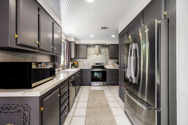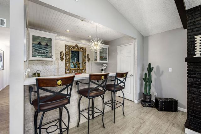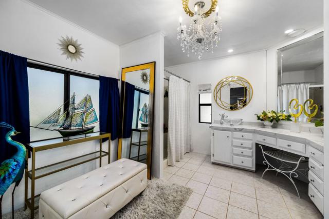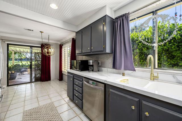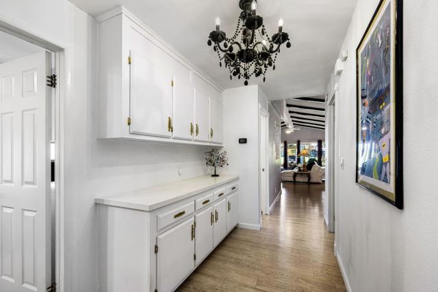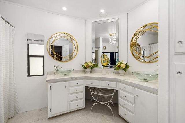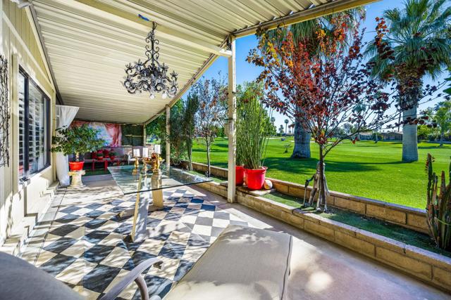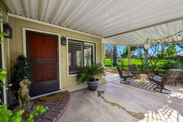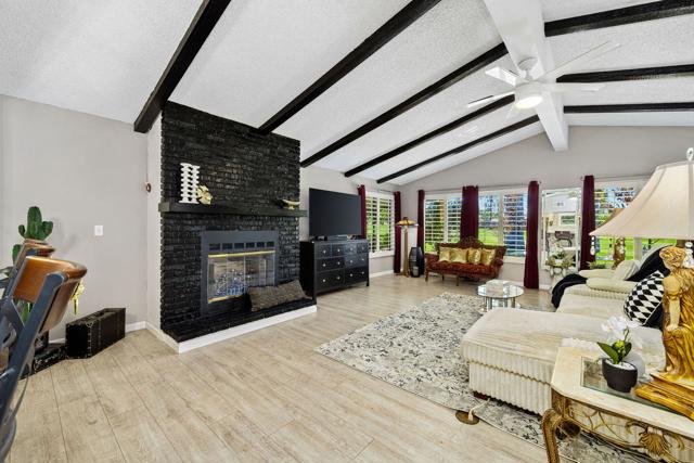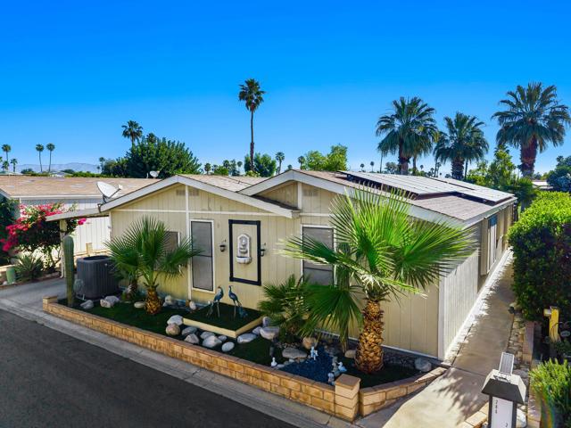 Experience bright, open living in this beautifully appointed 2-bedroom, triple-wide residence with stunning eastern golf course views. Spanning approximately 1,920 sq. ft., this thoughtfully REMODELED, energy-efficient SOLAR home blends comfort, style, and functionality--ideal for everyday living and effortless entertaining.The expansive great room features vaulted ceilings, striking art walls, a full wet bar, and wide picture windows that capture sweeping views of the course and wraparound patio. Select windows include custom solar screens to reduce glare and block harsh sunlight while maintaining natural light. The inviting kitchen offers stainless steel appliances, a five-burner electric cooktop, ample cabinetry with a pantry, and generous counter space. A charming garden window enhances the space with sunlight and serene greenery views.The open living and dining areas provide a perfect setting to relax by the fireplace or host gatherings, complemented by built-in cabinetry. The spacious primary suite offers a peaceful retreat with a large walk-in closet and a remodeled ensuite bath featuring a dual vanity, abundant storage, and a walk-in shower. The generous size guest bedroom includes mirrored wardrobe doors and convenient access to the guest bath.Outdoor living shines with a wraparound patio offering multiple seating areas to enjoy the tranquil golf course setting. The versatile laundry room doubles as a workspace, complete with room for a desk, ample storage, a deep utility sink, and direct access to the carport and storage shed.Suncrest Country Club is an exclusive 55+ active adult community offering 3 pools & spas, tennis and pickleball courts, and a 9-hole executive golf course. The gated neighborhood also features a vibrant social calendar with seasonal events and weekly gatherings at the clubhouse, all within close proximity to dining and shopping. Don't miss the opportunity to experience the Suncrest Country Club lifestyle. * Offered Partially Furnished. * Buyer to verify all information.
