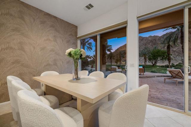 PGA Palmer Private: **OPEN This Saturday 4/18, 11:00AM-1:00PM. COME SEE!!**Do you want an upgraded fairway home with nothing behind you but stunning mountains? This is it!!Perfectly positioned near the 14th tee of the prestigious Palmer Private Course at PGA West, this property offers a rare and highly sought-after combination: wide-open fairway frontage with no homes behind you--just unobstructed mountain views that come alive at night when the Santa Rosas are beautifully illuminated. No rooftops, no back-to-back neighbors--just privacy, space, and dramatic desert scenery.The home has been thoughtfully refreshed and shows beautifully, with a clean, bright interior that is completely move-in ready. With approximately 2,800+ sq ft, 3 bedrooms and 3 bathrooms, the layout is open and functional, designed for easy indoor-outdoor living.The backyard is where this property truly shines. An oversized outdoor space features a private pool with a water feature and built-in cocktail table--perfect for relaxing or entertaining--plus a fire pit and expansive patio, all set against that incredible view.Here's the opportunity: the property comes with HOA-approved plans to build a casita, allowing you to create a 4-bedroom home. Four-bedroom properties with this kind of view in PGA West typically command significantly higher prices, making this a compelling value play.Additional highlights include no cart path behind the home and minimal golf ball exposure--another rare benefit for a fairway property.Located within the guard-gated PGA West community, offering world-class golf, tennis, dining, and resort-style living.Views. Privacy. Upside. Opportunity. Don't miss it!
