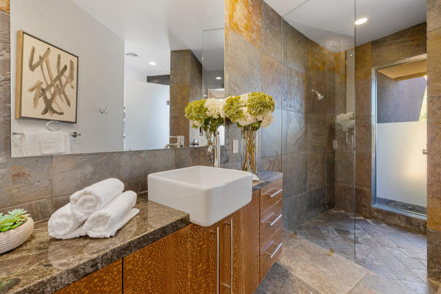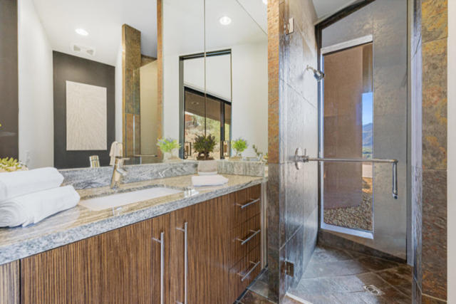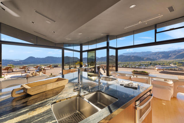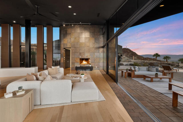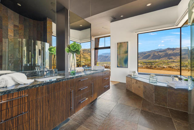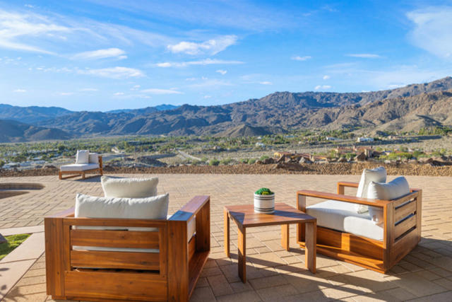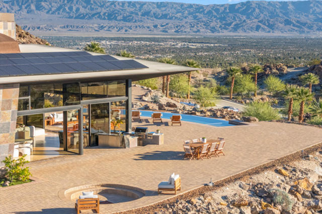 $1.1M Reduction Opportunity - Perched high up in sought-after Cahuilla Hills of Palm Desert, this extraordinary hillside property captures the perfect fusion of modern, solar-powered living and the desert's breathtaking natural beauty. Framed by sweeping panoramic views of the Santa Rosa Mountains, this privately gated residence designed by Award-Winning Architect Narendra Patel, offers an exceptionally rare opportunity to experience true Desert Luxury Lifestyle Living.Situated on 2 acres, the home's open-concept design showcases bold lines, exposed steel, natural stone, warm wood flooring, and expansive walls of glass. The infinity pool and spa appear to spill seamlessly into the mountain-scape, fully blurring the boundaries between indoors and out. From spectacular sunrises to unforgettable sunsets, this serene retreat delivers unmatched tranquility and privacy, yet easily transforms into an entertainer's dream.Inside, the dramatic slate stone fireplace and open kitchen act as stunning focal points, uniting the living spaces with warmth and architectural presence. The incredible primary suite provides a private sanctuary with unobstructed valley and mountain views, spa-inspired amenities, and refined finishes.A dedicated office suite offers an inspiring workspace or optional sleepover quarters, while two additional guest suites, including attached guest house with private exterior access and kitchen, ensure exceptional comfort and privacy for visitors.This exceptional home has served as a primary residence since it was built in 2010, aweing guests who always appreciate its privacy, comfort, awe-inspiring vistas, and exceptional setting for intimate or lively gatherings.The property also includes an additional graded pad complete with site-plan for a future garage and ADU, offering valuable expansion potential. Highly efficient Solar System includes 2 large batteries, last year creating a $1300 Negative annual Bill.Located just five minutes from downtown El Paseo, this is a rare opportunity available for only a limited time. Act now to make this architectural icon your own.