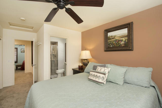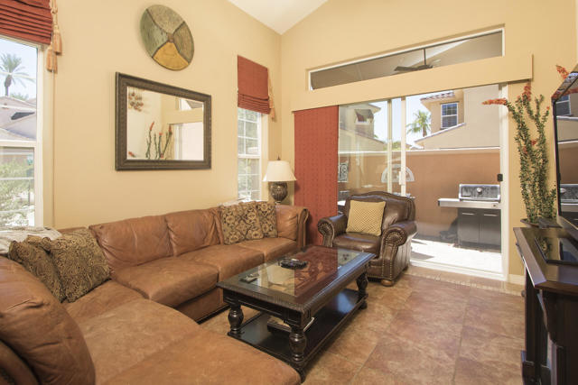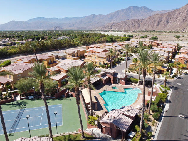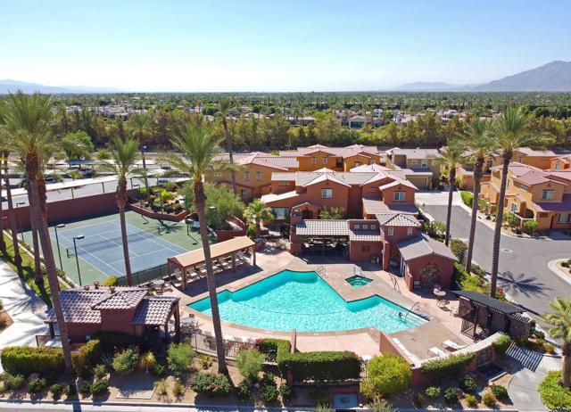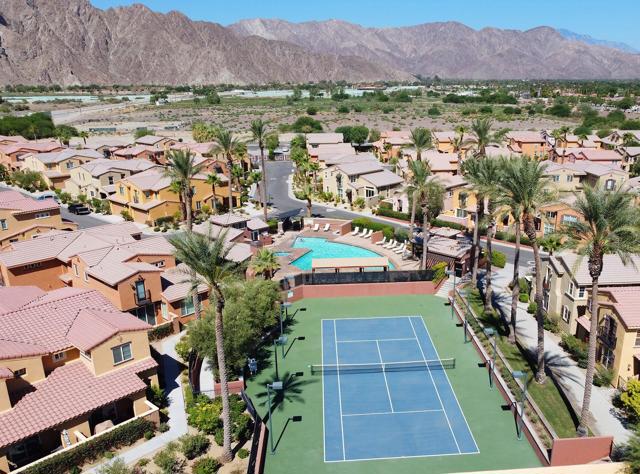 Move-in ready, this detached single-family residence is nestled in South La Quinta within the Codorniz community. A private courtyard entry opens to a light-filled interior designed for effortless desert living. The spacious great room features soaring cathedral ceilings, tile flooring, and seamless flow into the dining area and a thoughtfully appointed kitchen with quartz countertops, stainless steel appliances, and ample cabinetry--creating an inviting setting for both everyday living and entertaining.This well-designed layout offers dual upgraded en-suite bedrooms, providing exceptional privacy and flexibility--ideal for guests, shared ownership, or lock-and-leave living--while a stylish main-level powder room adds convenience for visitors. Meticulous upkeep is evident throughout. Enjoy quiet mornings or host memorable gatherings on the private patio just off the living area, perfectly suited for indoor-outdoor living. Community amenities include a pool and spa, fitness center, tennis court, BBQ area, and outdoor fireplace--perfect for gathering with friends or unwinding under the desert sky. Ideally located near Old Town La Quinta, residents enjoy close proximity to world-class golf, scenic hiking and biking trails, dining, and boutique shopping. Experience low-maintenance desert living in this charming South La Quinta community.
