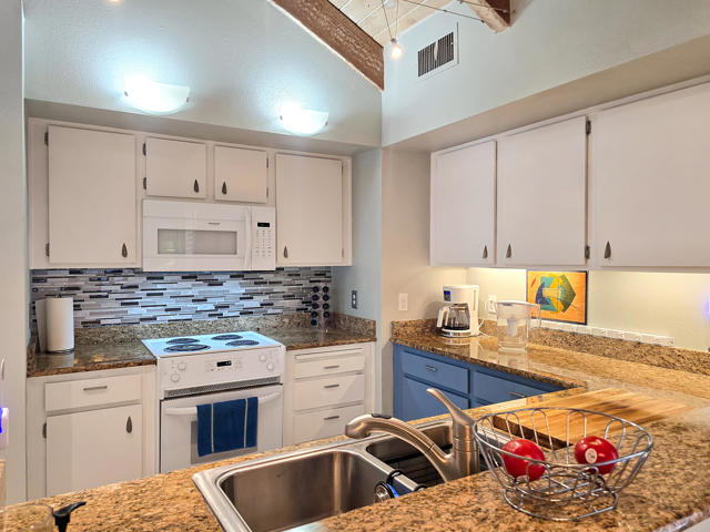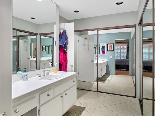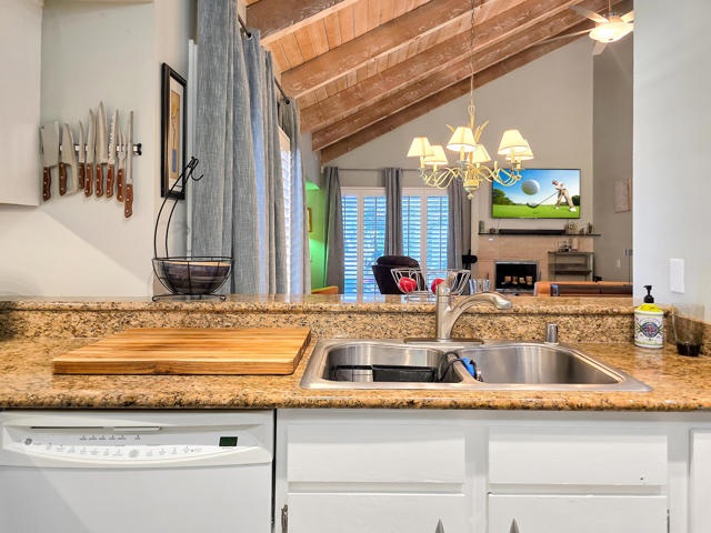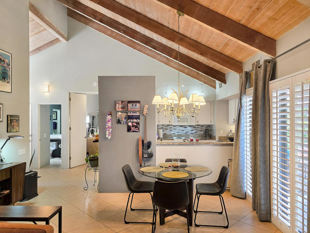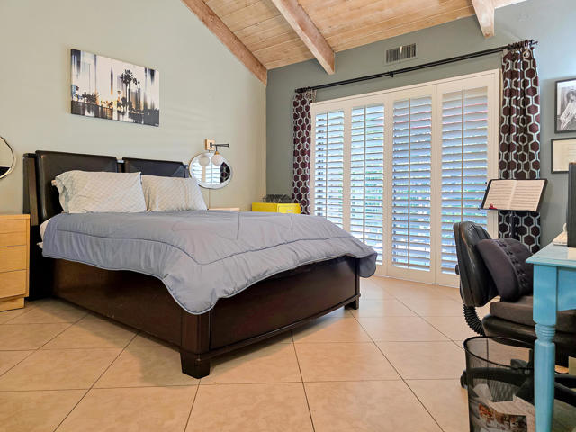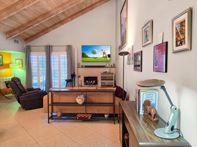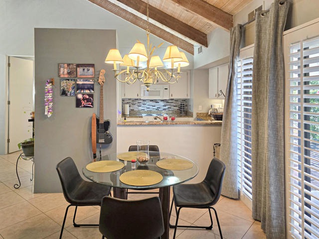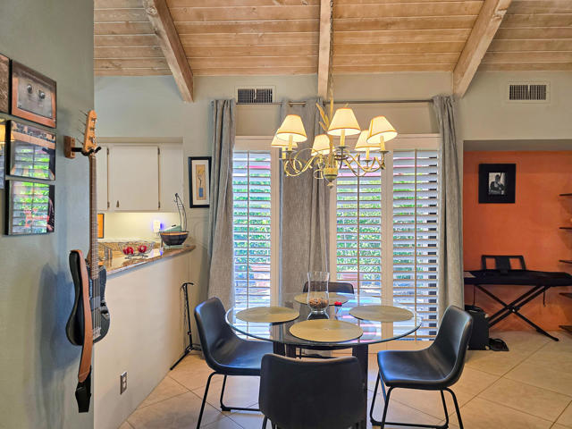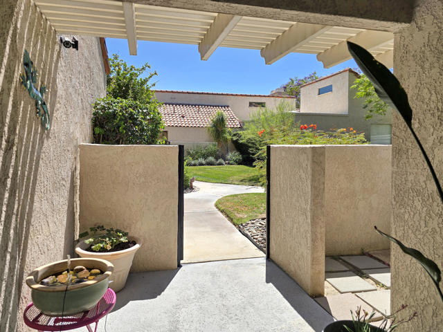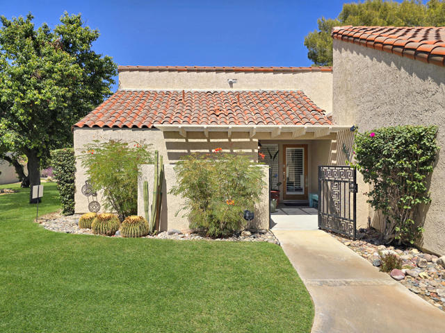 Beautiful 1BD/1.5BA condominium located in the highly sought-after tennis area of Mission Hills Country Club--widely regarded as offering some of the finest one-bedroom residences in the Coachella Valley.This single-level condo features impressive 17-foot ceilings in the living room, a cozy fireplace with hearth, and an abundance of natural light throughout. Enter through a private courtyard into a bright and inviting space with soaring vaulted wood-beamed ceilings, plantation shutters, tile flooring throughout, and an open-concept layout that feels both spacious and comfortable.The kitchen is well-appointed with granite countertops, and the living area opens through sliding glass doors to a private patio with pergola--perfect for relaxing or entertaining while enjoying the desert lifestyle.Ideally located near the association pool, this condo offers convenience and resort-style living. A detached two-car garage provides ample storage and parking.Mission Hills Country Club is known for its exceptional amenities, including three private golf courses, 27 tennis courts, croquet courts, a premier fitness center, and a variety of optional memberships for golf, tennis, and social activities.A rare opportunity to own a beautifully maintained home in one of the desert's most prestigious communities.