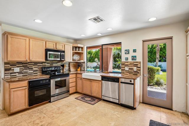 Welcome to the prestigious Palm Desert Tennis Club area, where resort-style living meets spacious desert elegance. This beautifully designed 3-bedroom, 3-bathroom home offers approximately 3,047 square feet of thoughtfully laid-out living space with an ideal blend of comfort and indoor-outdoor flow. Inside, you’ll find high ceilings, abundant natural light, and an open-concept layout. The main living area features a dramatic floor-to-ceiling stone fireplace, built-in shelving, and large glass doors that open to the backyard. The dining area is accented with stylish lighting and framed by windows overlooking the pool. The kitchen offers ample cabinetry, generous counter space, stainless steel appliances, and a window with backyard views. The spacious primary suite serves as a private retreat with a sitting area, dual vanities, soaking tub, and a walk-in glass block shower. Secondary bedrooms are well sized, with one offering direct outdoor access. The backyard is designed for both relaxation and entertaining, featuring a pool and spa, covered patio, fire pit area, and mature landscaping with lush greenery and palm trees. A private front courtyard and clean architectural lines enhance the home’s curb appeal. Located in a highly desirable community near shopping, dining, and golf, this home captures the essence of Palm Desert living. NO HOA and Close to Palm Desert Tennis Club! Will come Fully Furnished!