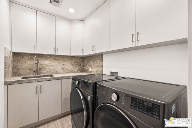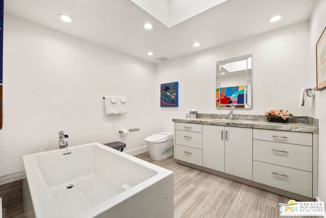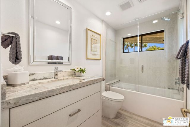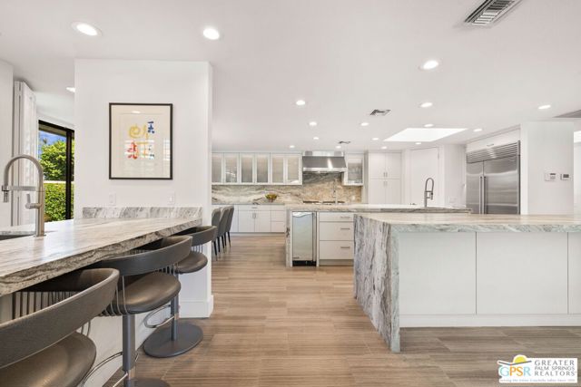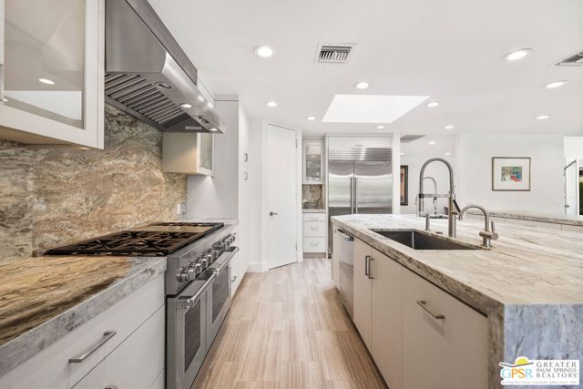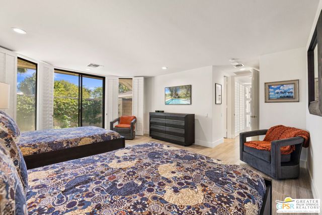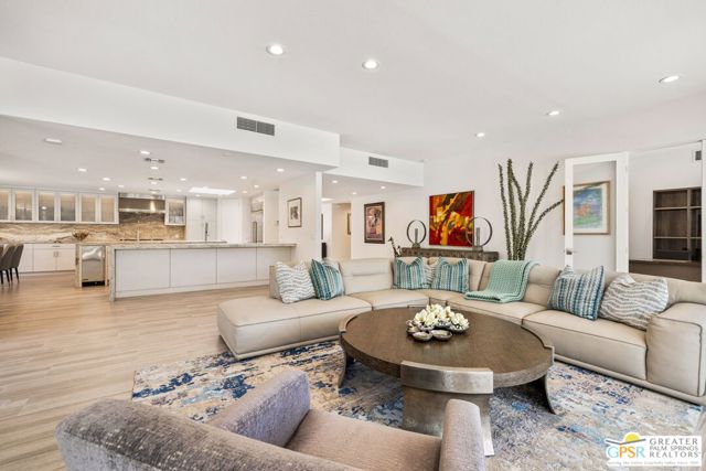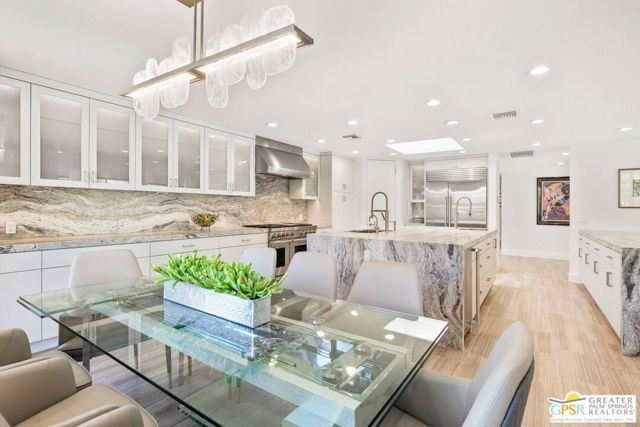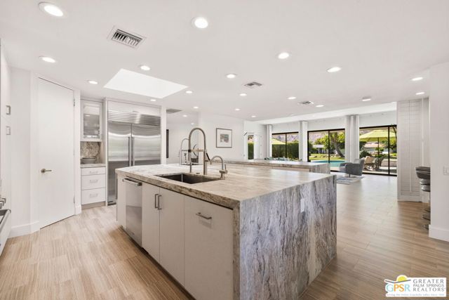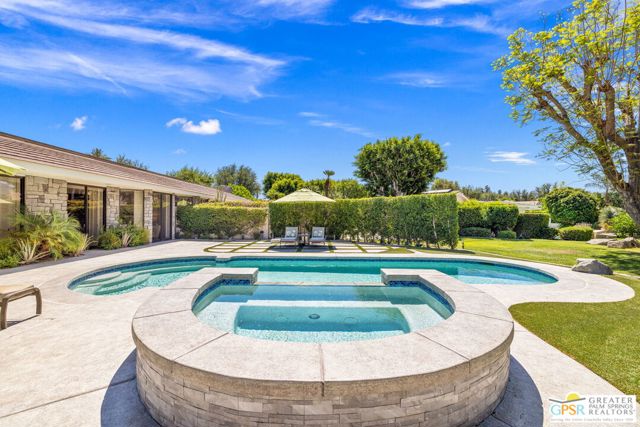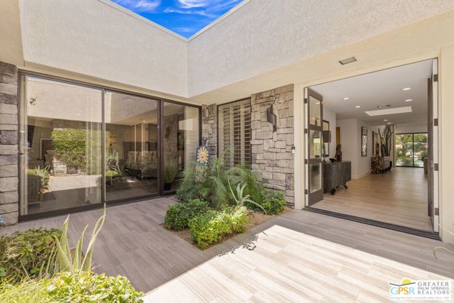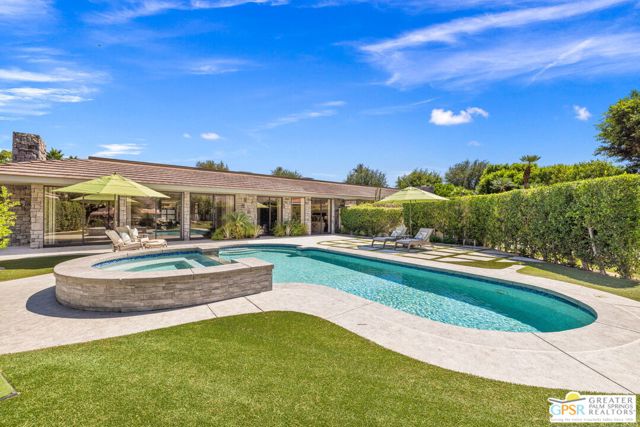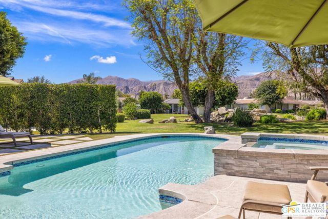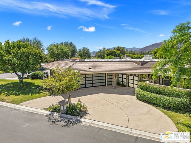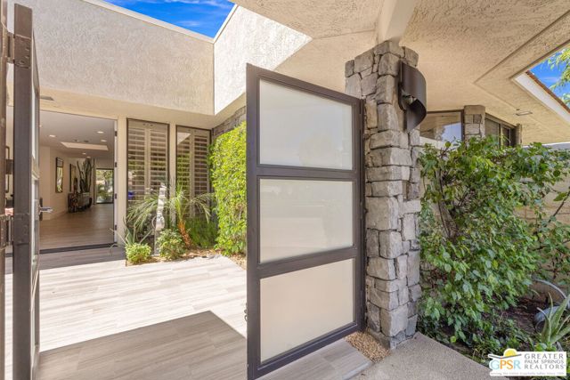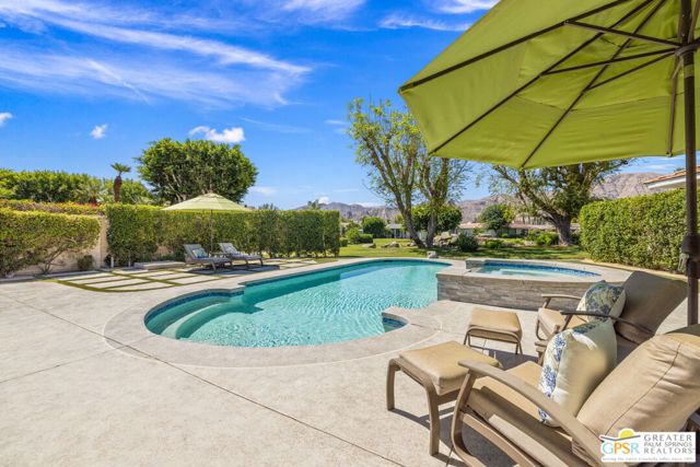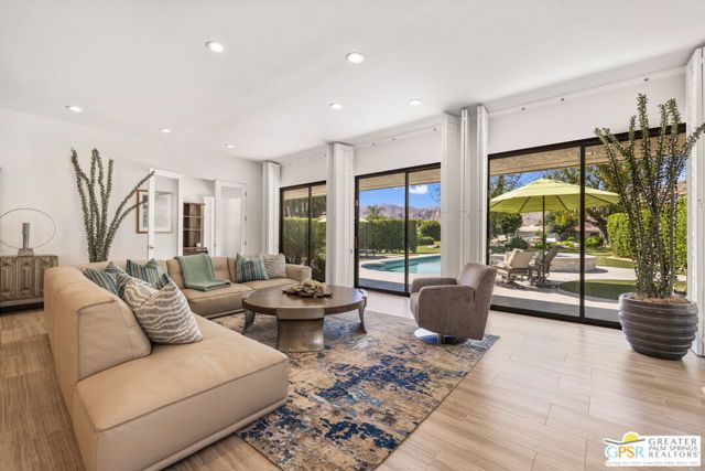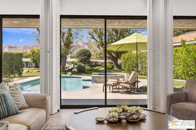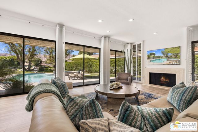 Perfectly positioned on a premier south-facing lot at The Club at Morningside, this extensively renovated Oakmont III residence captures sweeping views of the lake, fountains, waterfalls, and surrounding mountains creating a true resort-style setting in the heart of Rancho Mirage. A private courtyard with custom gates and dual entry doors sets up a refined tone, leading to a formal entry and light-filled open floor plan designed for both everyday living and elevated entertaining. Walls of glass frame the views and create seamless indoor/outdoor flow to the spectacular backyard anchored by a saline pool and spa. At the center of the home, the gourmet kitchen delivers both form and function with premium cabinetry, stone countertops, and a top-tier appliance suite including Wolf range, Sub-Zero refrigeration, and Viking ice maker - opening to dining and living areas that connect effortlessly to the outdoors. A wet bar with wine and beverage refrigeration enhances the home's entertaining appeal. The south-facing living room with fireplace opens to the backyard, complemented by a private office with inspiring views. The Primary Suite is a true retreat with outdoor access, stunning views, and the rare luxury of DUAL private ensuite baths. Junior Ensuites Two and Three are thoughtfully separated, each with private baths and outdoor access. Completely renovated in 2021, the home showcases new porcelain tile flooring, updated cabinetry and countertops throughout, redesigned baths with new tile showers, upgraded lighting, new air ducts, and modernized systems. Outdoor improvements include a saltwater pool conversion with new tile and PebbleTec, added spa with Pentair system, expanded hardscape, synthetic turf, and cool deck surfaces. Additional upgrades include owned solar (2022), a new roof (2025), and new HVAC systems (2025)delivering both efficiency and peace of mind. A two-car garage plus golf cart garage with epoxy flooring and upgraded systems completes the offering. A rare combination of premier lot, south-facing orientation, extensive renovation, and timeless design - this is elevated desert living at its finest.