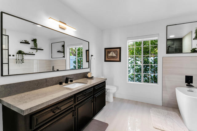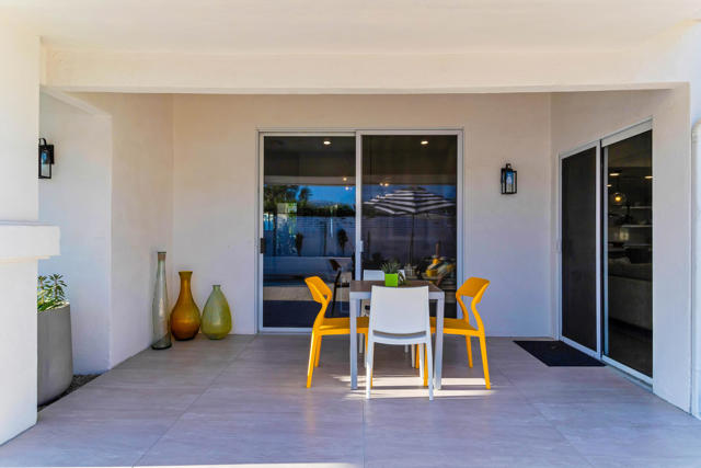 SUN SUN SUN, South Facing: Welcome to Indian Wells, a premier desert city known for its secure, upscale lifestyle & exclusive resident benefits. This beautifully reimagined gated home blends Mediterranean & Mid-Century Modern design in the heart of the Coachella Valley. Enjoy a small gated community with LOW HOA, peaceful streets & dark desert skies just minutes from world-class golf, tennis, pickleball, hiking, dining, & shopping.Fully remodeled in 2023, this custom residence underwent a complete renovation & is move-in ready. Wall-to-wall tile flows seamlessly indoors & out. The chef's kitchen features premium Fisher & Paykel stainless steel appliances, new cabinetry, & generous prep space. All bathrooms have been newly redesigned, including a spa-inspired primary suite with expanded custom closet/dressing room & unique indoor-outdoor bath access.The heated saltwater pool & raised spa were updated with new equipment. Fresh landscaping includes citrus trees, raised garden beds, pergola, outdoor shower, & built-in grill--creating a private resort-style setting ideal for entertaining.Designed for gathering, the open-concept kitchen connects to a sun-filled breakfast nook & formal dining area. The sunken living room with fireplace invites evening cocktails & relaxed conversation. Spacious guest bedrooms provide comfort & privacy.Located minutes from El Paseo, the Indian Wells Tennis Garden, & The Living Desert, this home offers exceptional access to the best of the desert. Indian Wells residents enjoy exclusive benefits including discounted golf at the Indian Wells Golf Resort, savings at select hotels & restaurants, access to hotel fitness facilities, & resident-only events.More than a home--this is a lifestyle investment in one of the desert's most desirable communities.