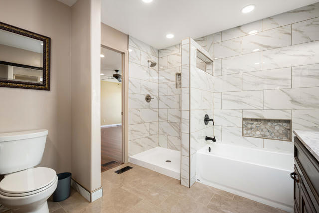 Located in the highly sought-after 55+ gated community of Portola Country Club, this beautifully upgraded home offers the perfect blend of comfort, style, and resort-style living. Situated on a quiet interior lot, the home is filled with natural light and showcases an open, airy floor plan ideal for both everyday living and entertaining. Offering 1,920 square feet, the home features 2 bedrooms, 2 bathrooms, and a versatile den--perfect for a home office, hobby space, or easily converted into a third bedroom. The spacious living room is highlighted by a cozy wood burning fireplace, creating a warm and inviting focal point. The gourmet kitchen has been tastefully remodeled with granite slab countertops, custom wood cabinetry, and upgraded appliances, making it ideal for hosting friends and family. The luxurious primary suite serves as a private retreat, complete with a spacious tiled shower, dual vanities, and a relaxing soaking tub. Additional features include; swamp cooler and newer dual pane windows throughout! Low HOA dues include free golf for two people on title, as well as cable and trash service. Residents enjoy an impressive array of amenities, including a clubhouse and restaurant, billiard and meeting rooms, three pools and spas, a fitness center, tennis courts, bocce ball, a dog park, and more. Golf cart and patio furnishing included in sale. Ideally located in the heart of Palm Desert, just minutes from the world-class shopping and dining of El Paseo, this is a rare opportunity to own a beautifully upgraded home in one of the desert's most desirable active adult communities. Schedule your private tour today.