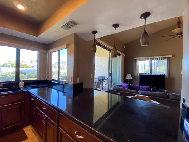 Available for a long term rent (12 months minimum). This spacious South Palm Desert, 2 bedrooms 2 bathrooms. Located in the Mountain Villas gated community, walking distance to El Paseo, and offers several pools & spas and tennis courts. This home has it all: remodeled chef's kitchen with granite counters, porcelain tile on both levels, over 9 feet high ceilings, large rooms, private laundry, tons of closet and storage space and a private, attached 2 car garage. Beautiful mountain views from your private balcony and your own private patio overlooking the pool area. This home is private and quiet, and yet just minutes from any shopping and dining you might need. Offered furnished (owner would consider delivering it unfurnished if needed) and available to move in.