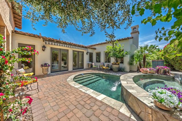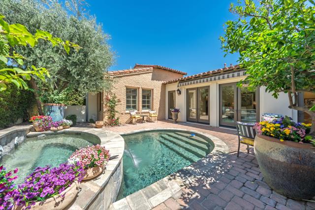 Discover luxury desert living in this stunning 3 bedroom, 3.5 bathroom single-family home in The Province. Spanning 3,657 sq. ft. on a 10,019 sq. ft. lot, this exquisite residence blends sophistication with comfort.Inside, a gourmet kitchen boasting high end stainless appliances, perfect for the culinary enthusiasts. The elegant living room, separate dining room, and inviting family room offers soaring ceilings, intricate crown molding and ample space for entertaining and relaxation. French doors open to your private outdoor oasis featuring a built-in BBQ bar, a tranquil PebbleTec Spool with a waterfall and a spa, ideal for year-round enjoyment.The primary retreat is spacious with an ample walk-in closet, travertine floors and the finest fixtures and finishes in the en-suite bathroom. Indoor laundry room and spacious garage accommodates 2 cars and a golf cart. LEASED SOLAR: $624 per month - 64 panels. This home is unfurnished and ready for your personal touch, a blank canvas to make it your own. Located in one of the most sought-after communities in Indian Wells, enjoy world class golf, tennis, fine dining and the ultimate desert lifestyle all within a short distance. Schedule a private showing today!
