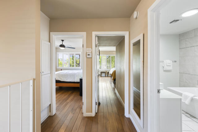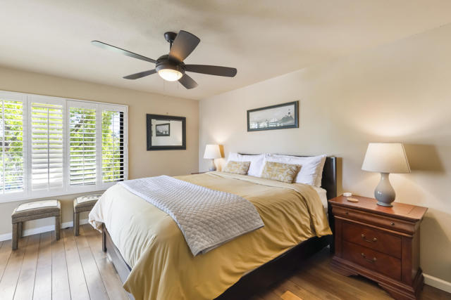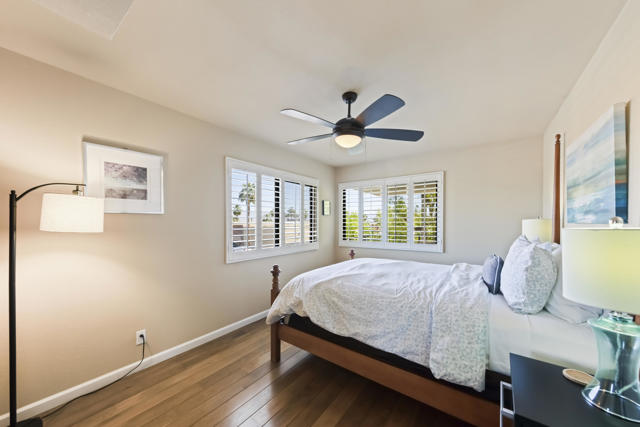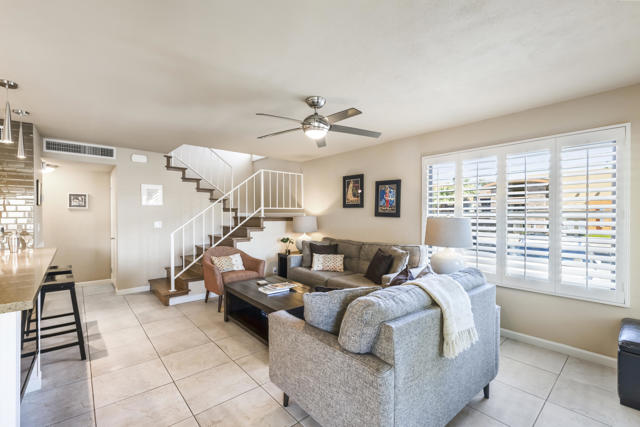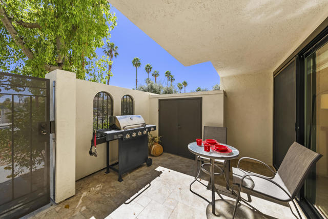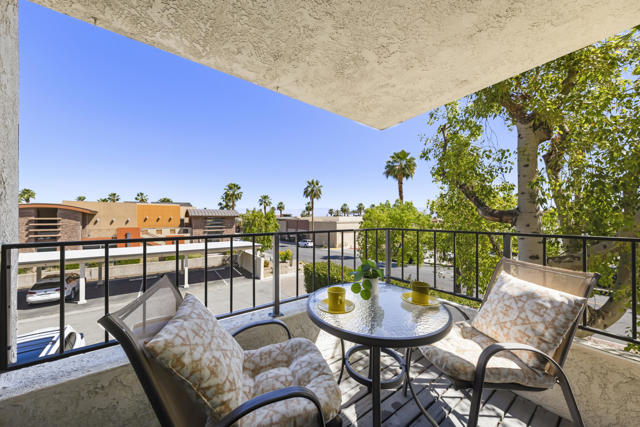 Welcome to this beautifully and fully renovated condo in the heart of Palm Desert, just steps from the iconic El Paseo. This is a rare opportunity to own a move-in ready residence in one of the most walkable and desirable locations in Palm Desert, where luxury shopping, dining, and desert lifestyle all come together. Perfectly suited for short term rental or personal use, the property has a proven STR history and offers strong income potential. Guests and owners are drawn to the easy access to restaurants, boutiques, and entertainment just steps away. The interior features a thoughtful layout with modern finishes throughout. The upstairs bathroom is spacious, refreshed and designed to serve both bedrooms comfortably. A stacked washer and dryer is conveniently located on the bedroom level. Outdoor living is a highlight with a private walled front patio, perfect for dining, BBQ or relaxing in privacy. And take in great views from the balcony off the bedroom. Enjoy resort style amenities, including a sparkling pool, spa, tennis courts and a community game room, creating lifestyle and vacation/rental appeal. Located just minutes from Palm Springs International Airport, world class golf and entertainment venues including Acrisure Arena and the McMalluum, this home offers exceptional convenience in the Coachella Valley. Perfect income producing investment, serene desert escape or full time residence, this condo offers effortless Palm Desert living in one turnkey package.