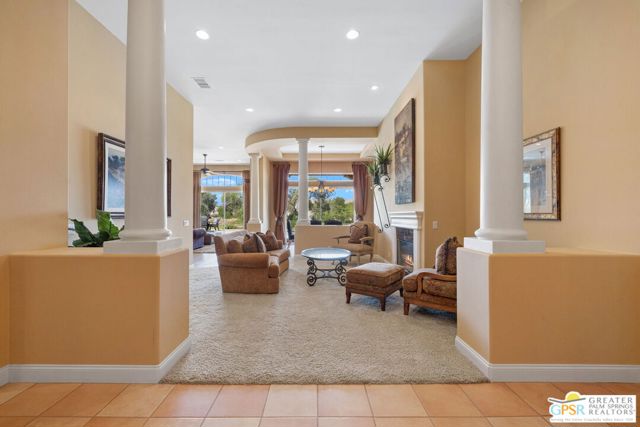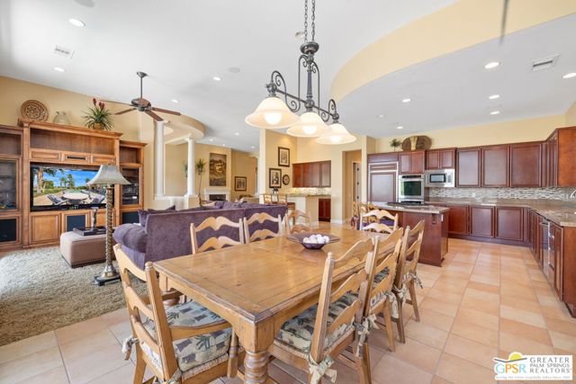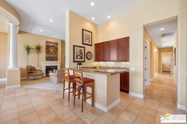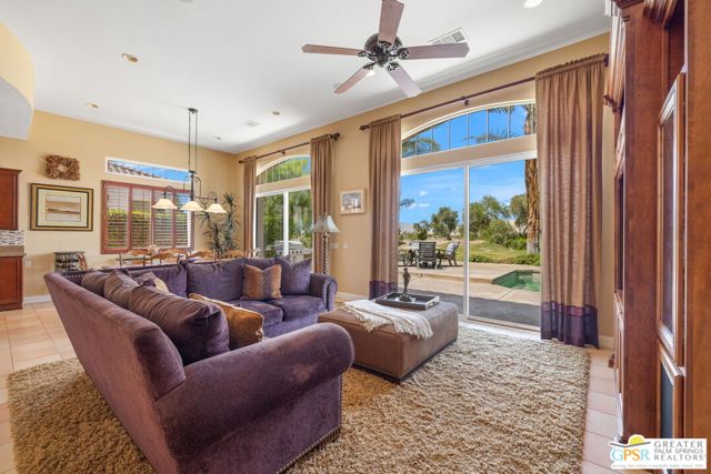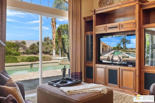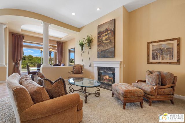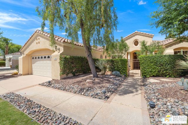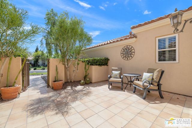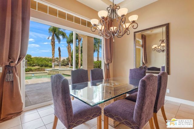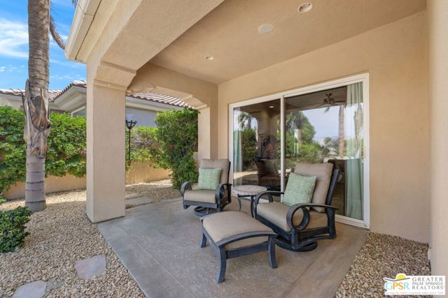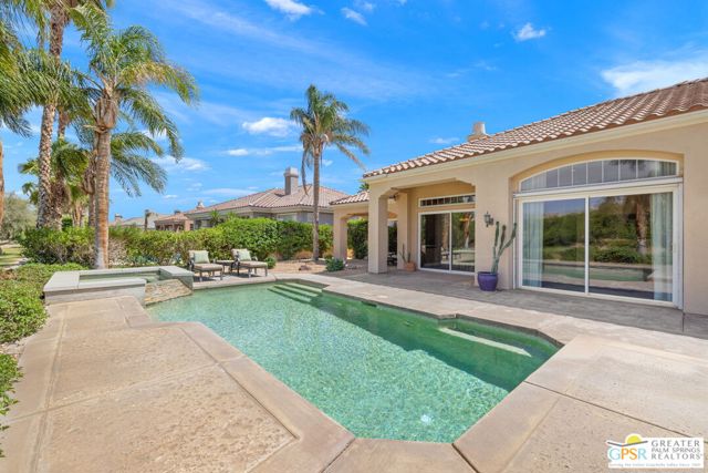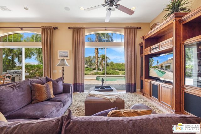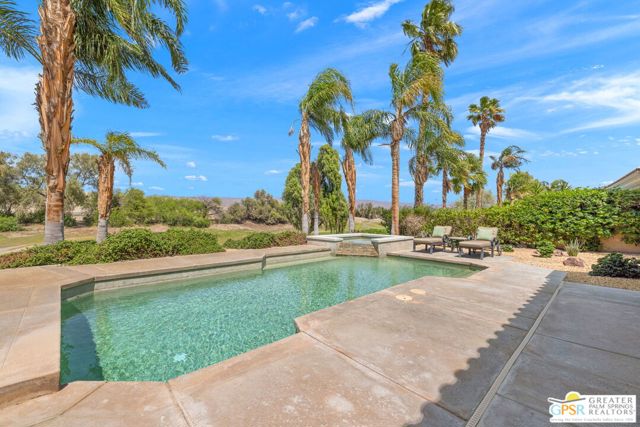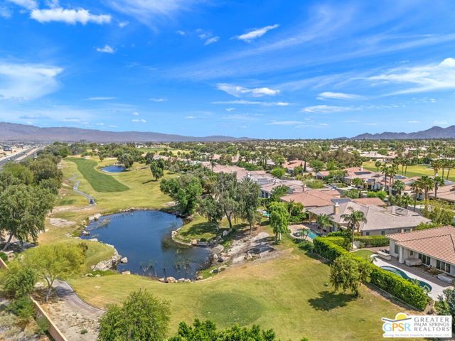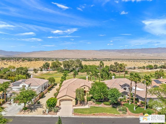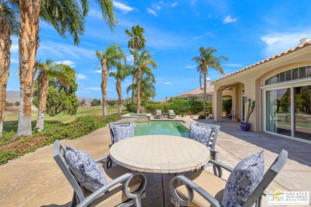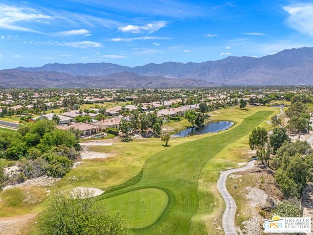 Pool, fairway, and mountain views come together at this 3 bedroom + den, 3.5 bath turnkey furnished residence overlooking the 3rd hole of the Mission Hills North Gary Player Signature Course. Located behind the gates of Mira Vista, this well-priced home delivers an effortless desert lifestyle with access to tennis, pickleball, a nearby community pool, and social amenities including the popular Lakeview Grill. Built by Toll Brothers, the home features tall ceilings and light-filled living spaces designed to capture the surrounding views. A private courtyard entry leads to a formal foyer with immediate mountain vistas, setting the tone for the open and inviting floor plan. The expansive great room offers multiple areas for relaxing and entertaining, anchored by a light and bright kitchen with stainless appliances, a large island, and seamless connection to the casual dining and living areasall oriented toward the fairway. A nearby wet bar enhances the home's entertaining appeal, while a separate formal living room with fireplace and adjacent dining room provide space for more intimate gatherings. The Primary Suite enjoys direct access to the backyard and features dual walk-in closets and a spacious bath with soaking tub and walk-in shower. On the opposite side of the home, two guest ensuites each offer private baths, while a separate den/office adds flexibility. Additional features include a powder bath, laundry room with sink, and a layout designed for both privacy and connection. A turnkey golf course home offering views, comfort, and exceptional value!
