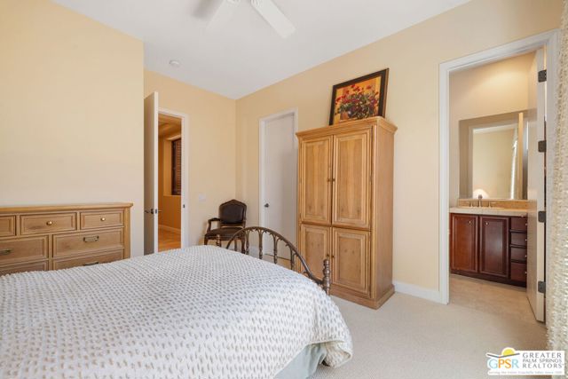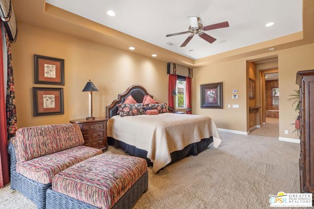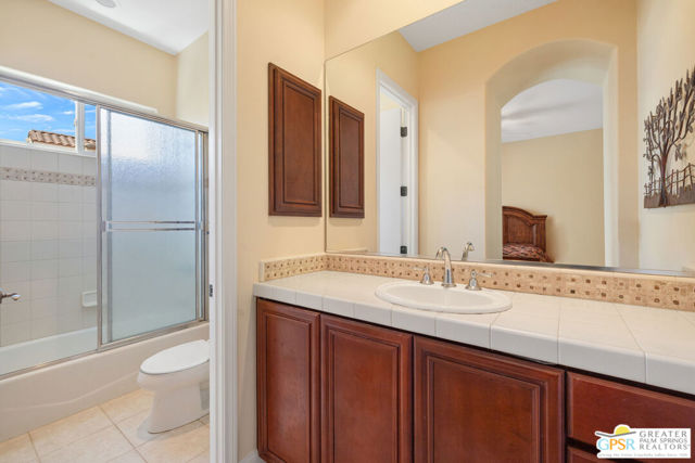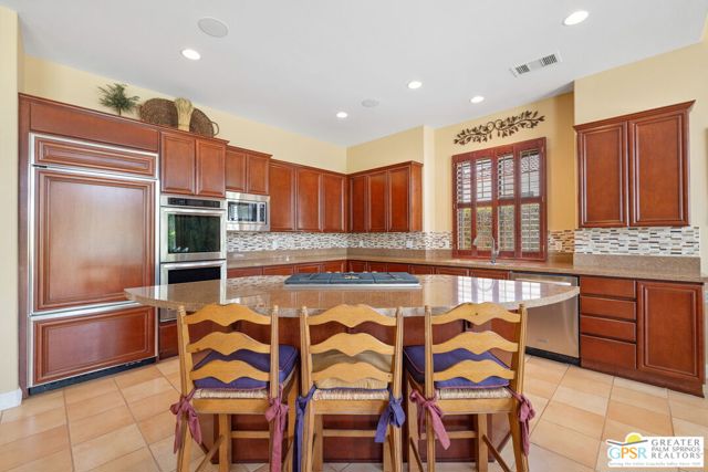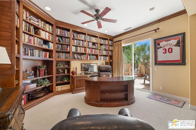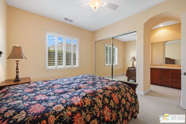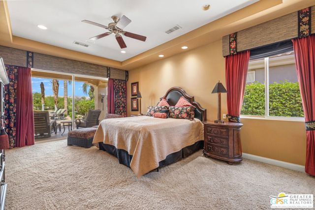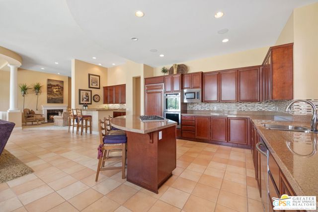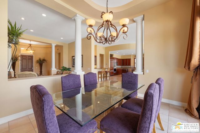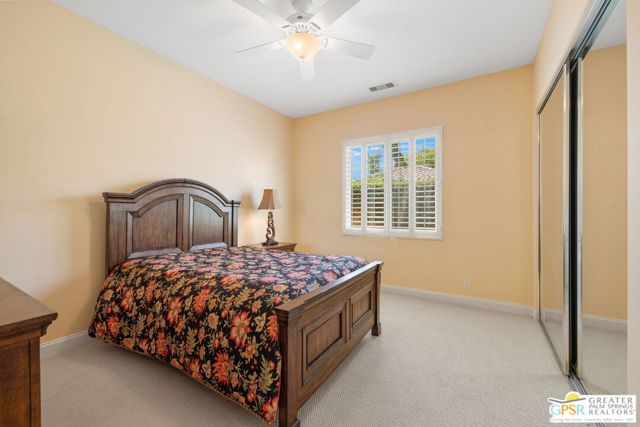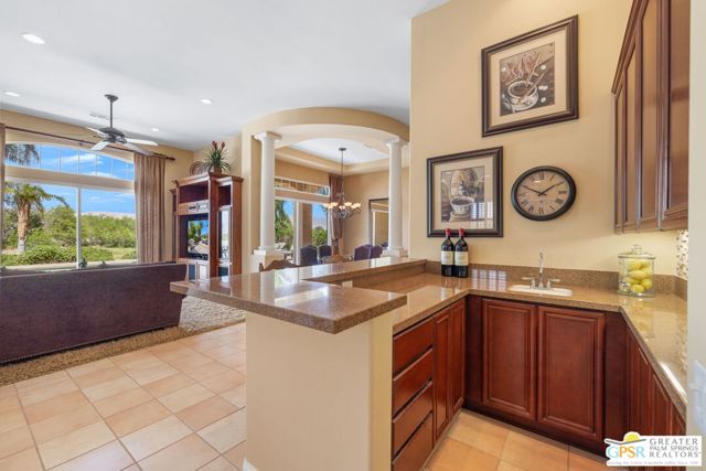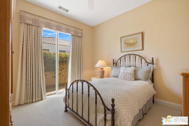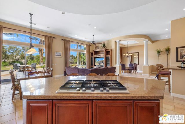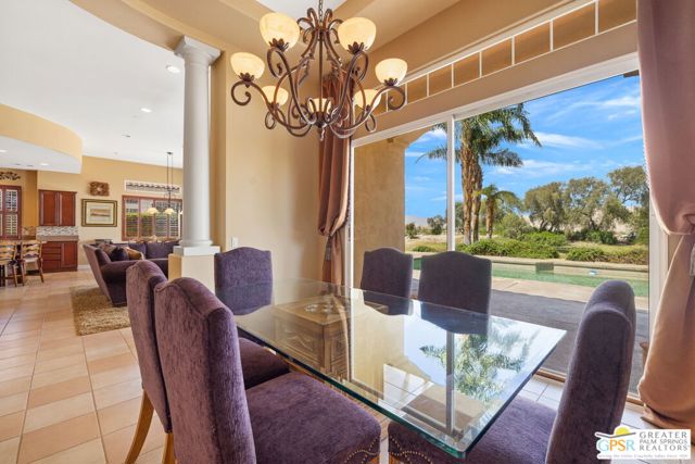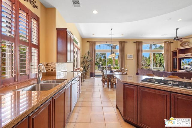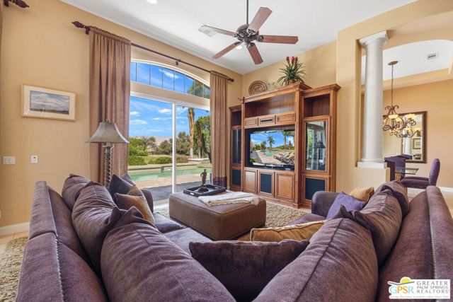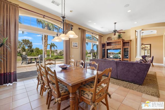 Pool, fairway, and mountain views come together at this 3 bedroom + den, 3.5 bath turnkey furnished residence overlooking the 3rd hole of the Mission Hills North Gary Player Signature Course. Located behind the gates of Mira Vista, this well-priced home delivers an effortless desert lifestyle with access to tennis, pickleball, a nearby community pool, and social amenities including the popular Lakeview Grill. Built by Toll Brothers, the home features tall ceilings and light-filled living spaces designed to capture the surrounding views. A private courtyard entry leads to a formal foyer with immediate mountain vistas, setting the tone for the open and inviting floor plan. The expansive great room offers multiple areas for relaxing and entertaining, anchored by a light and bright kitchen with stainless appliances, a large island, and seamless connection to the casual dining and living areasall oriented toward the fairway. A nearby wet bar enhances the home's entertaining appeal, while a separate formal living room with fireplace and adjacent dining room provide space for more intimate gatherings. The Primary Suite enjoys direct access to the backyard and features dual walk-in closets and a spacious bath with soaking tub and walk-in shower. On the opposite side of the home, two guest ensuites each offer private baths, while a separate den/office adds flexibility. Additional features include a powder bath, laundry room with sink, and a layout designed for both privacy and connection. A turnkey golf course home offering views, comfort, and exceptional value!