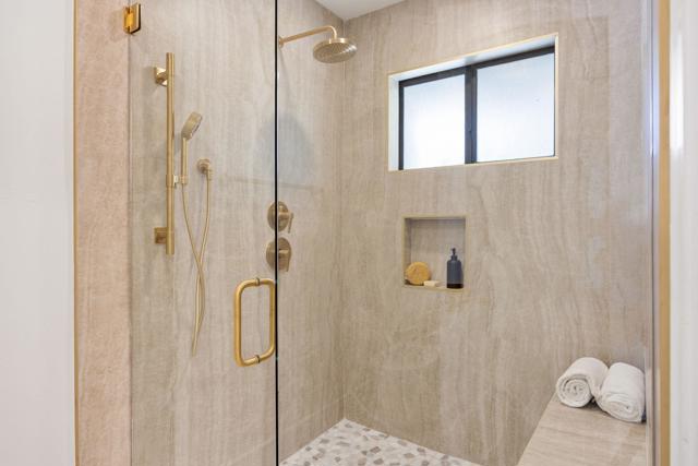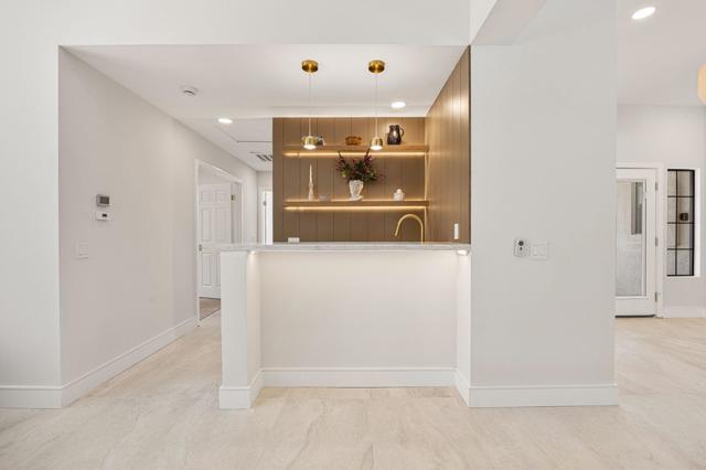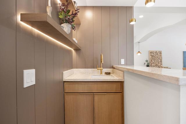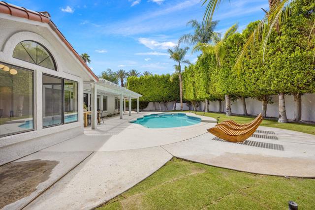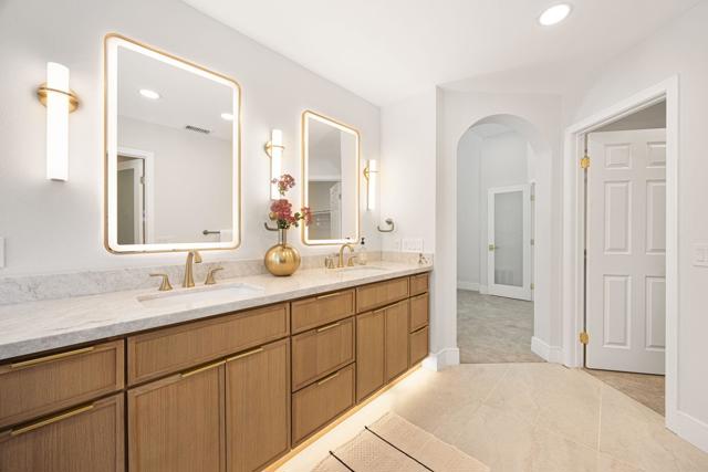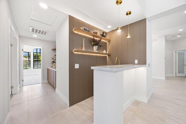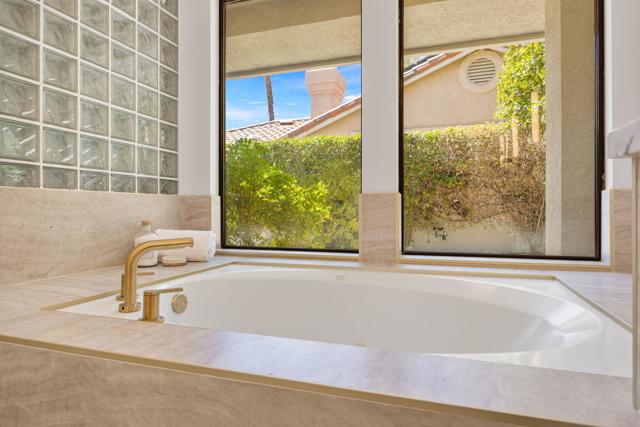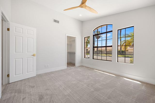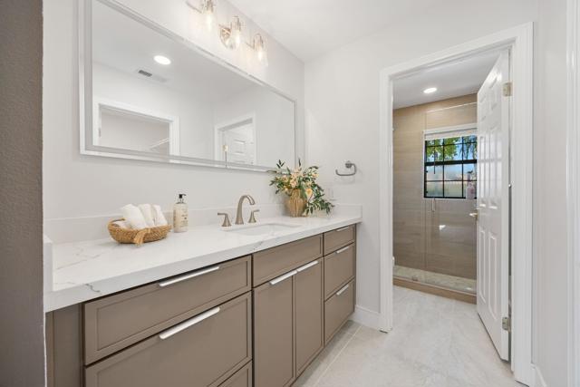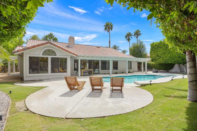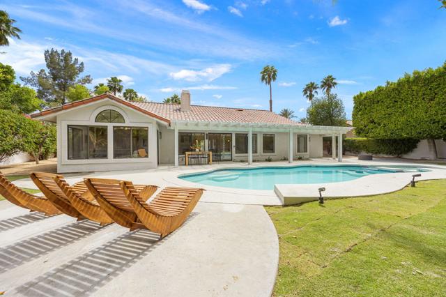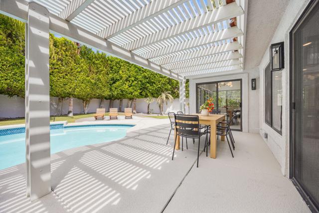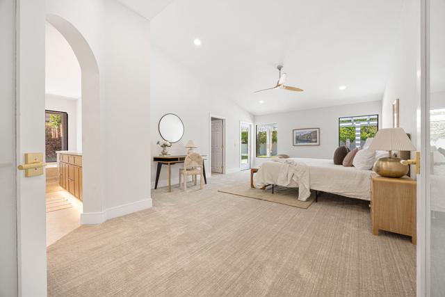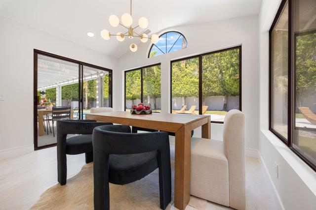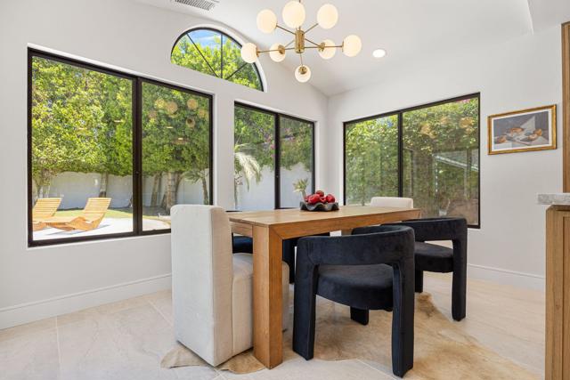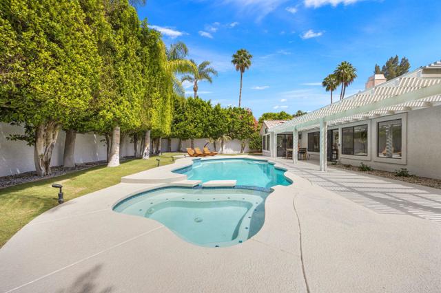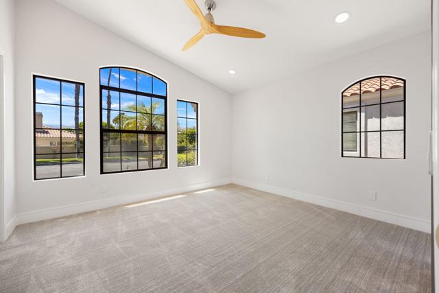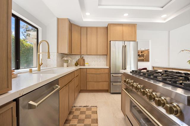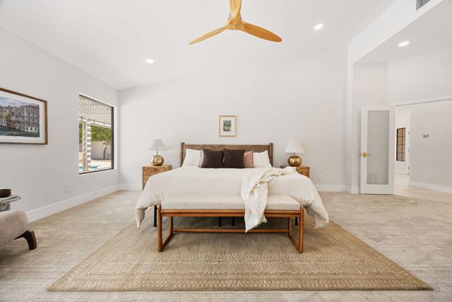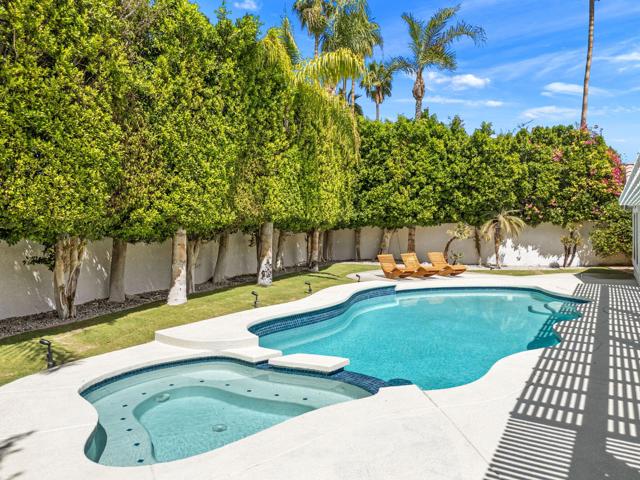 Beautifully reimagined desert residence located in the heart of Rancho Mirage. Welcome to 75 San Marino Circle, a fully renovated showpiece that seamlessly blends warm modern design with refined desert living. This thoughtfully curated home features soaring vaulted ceilings and two spacious living areas, each anchored by its own fireplace, including a striking dual fireplace that enhances both spaces while creating an inviting and functional layout ideal for relaxing and entertaining. At the center of the home is a brand-new designer kitchen, complete with slim oak shaker cabinetry, stunning Taj Mahal quartzite countertops and finishes, and a premium 36-inch dual fuel ZLINE range with matching appliances, perfect for the modern chef. The luxurious primary suite offers a spa inspired retreat with custom tiled shower walls, dual walk-in closets, and thoughtfully designed built-ins providing both style and functionality. Additional highlights include custom lighting throughout, enhancing the home's warm and elevated ambiance, along with a three-car garage providing plenty of space and convenience. Step outside to enjoy the upgraded pool and refreshed landscaping, designed for effortless indoor-outdoor living and year-round enjoyment. Every detail of this home has been carefully selected to deliver a sophisticated yet comfortable desert lifestyle, ideally located just minutes from shopping, dining, casinos, and world class golf, offering the best of Rancho Mirage living.