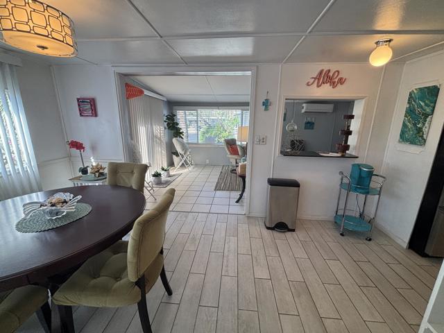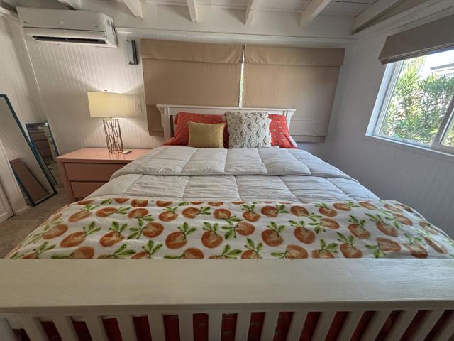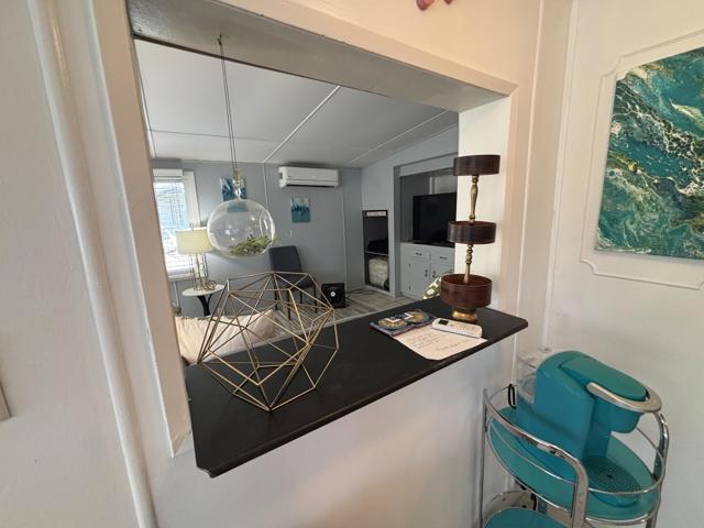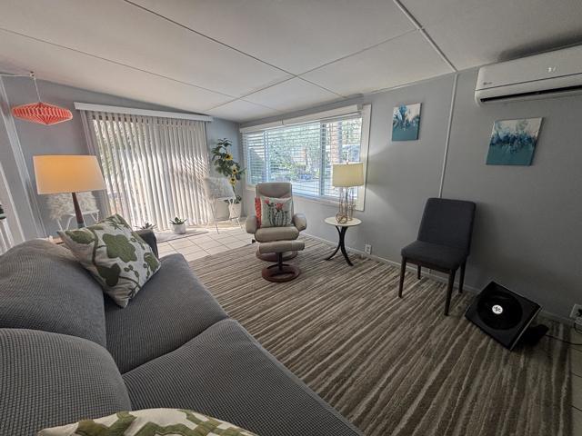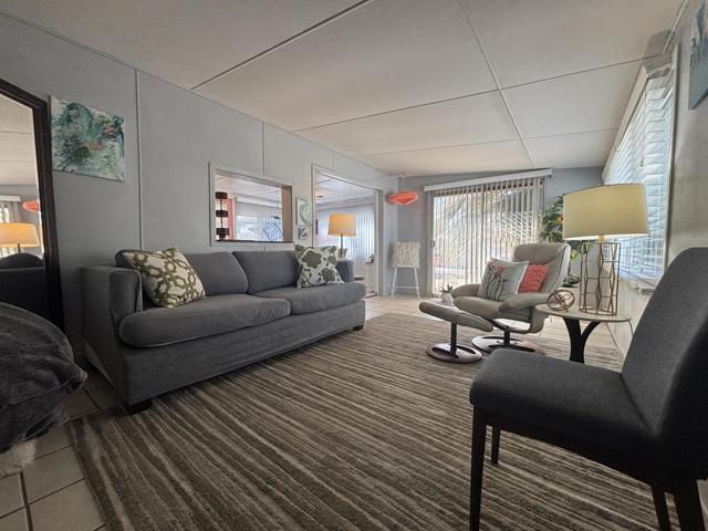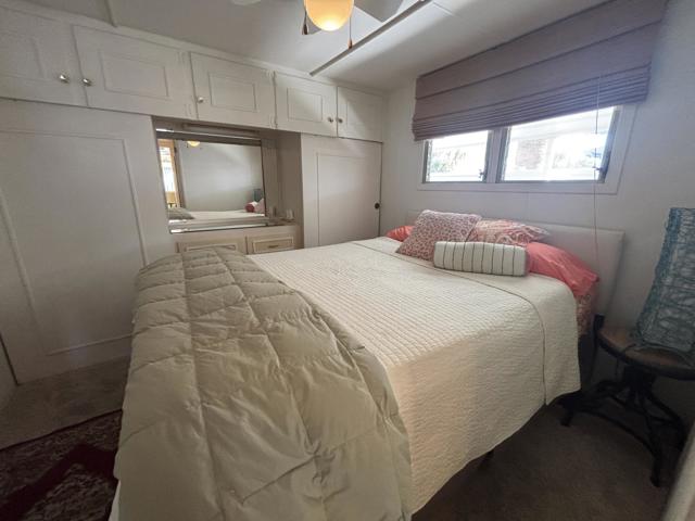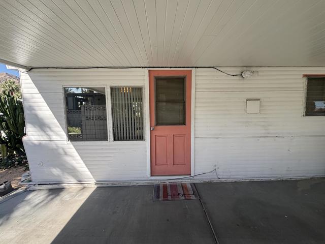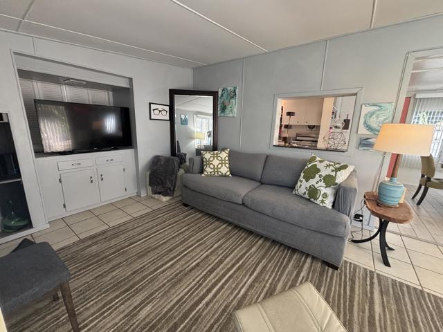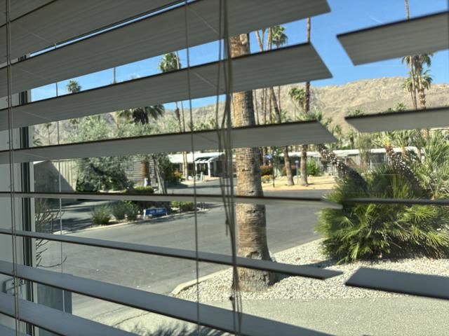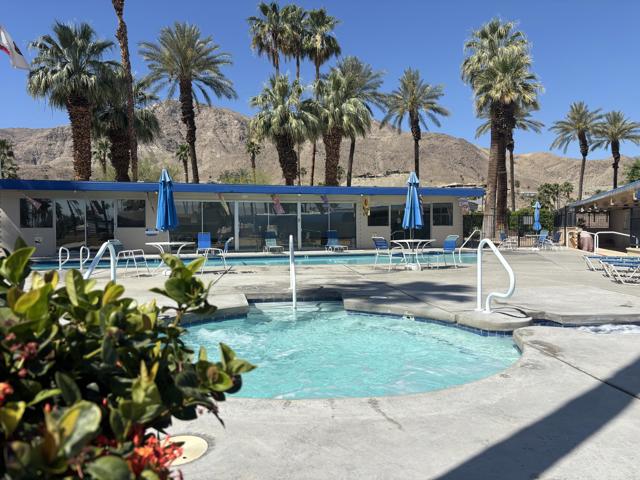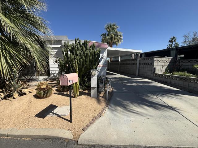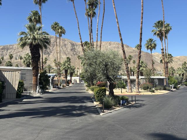 2 bedroom FURNISHED gem available now for a 12 month lease. Or Use it as your Vacation home in the Desert . Welcome to this iconic community (Blue Skies) founded as a ''Hollywood Playground'', by such greats as Jack Benny, George Burns, Bing Crosby. Eclectic 55+ gated enclave of architecturally distinct and creative Mobile/Manufactured homes. Resort style amenities adjacent to the Club house designed by renowned architect William F. Cody in his signature Mid Century Style. You will enjoy a community salt water pool, fitness area, card room/library, and billiard room. This delightful 2 bedroom, 1 full bath home offers 836 sq ft and feels much more spacious due to the vaulted ceilings and all new windows throughout that capture the sun and stunning mountain views. 2 fairly new mini splits will save utility costs. The master bedroom opens to the outside for easy access to laundry and El Fresco eating area. Ample parking carport can easily accommodate 3 cars. A smaller hidden front seating patio is perfect for your morning coffee. The interior design and decor is lively, fresh and immaculate. The owners have stocked this home with everything you should need. Ideal for long term living or a 2nd home to vacation too on your weekends. The monthly rent is Less than the monthly price of hotels and includes your Cable TV, WIFI, Water, Trash. All you pay is Electric and Nominal Gas ! This is resort style living located just minutes to shopping, dining and cultural attractions of Palm Desert and Palm Springs in an extraordinary setting. Put this one at the top of your list, there is no other community like this in our Desert ! Call us today for a private viewing !
