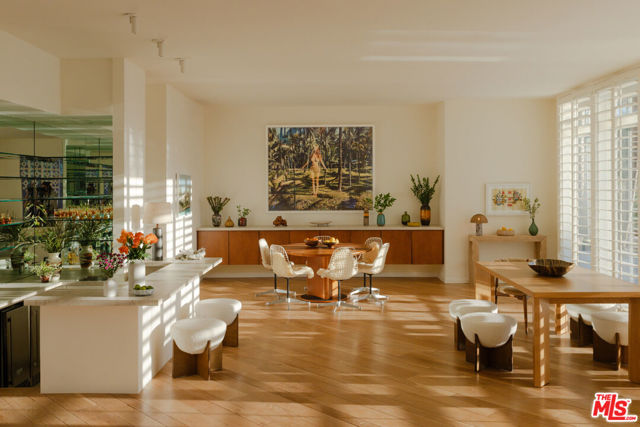 Commanding double fairway and Southwest mountain views, this fully reimagined modern estate in the prestigious Club at Morningside is set on one of Rancho Mirage's most coveted lots. This 4BD/5BA residence offers seamless indoor-outdoor living with soaring ceilings, smooth-finish walls, and expansive glass opening to a private resort-style setting. A fully integrated Savant smart home system controls lighting, climate, and shades, complemented by a 91-panel owned solar system. The chef's kitchen features top-tier Thermador appliances, dual dishwashers, an under-counter Sub-Zero beverage refrigerator, and a striking glass wine display. Outdoor living is elevated by a custom blue glass-tile saltwater pool and spa, an expansive patio, a BBQ island, a misting system, custom lighting, and a six-hole putting green. A fully equipped cabana with pop-up TV, heaters, fans, and automated shades ensures year-round enjoyment. The primary suite captures double fairway views and offers a fireplace, sitting area, spa bath, steam room, and dual vanities, plus a separate air-conditioned bonus room. Additional highlights include a dramatic 11-foot pivot entry and a custom garage with epoxy floors, glass doors, built-ins, and golf cart space.