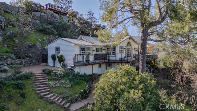 Nestled within the lakeside community of the Santa Monica Mountains, this romantic and serene retreat captures breathtaking deck views overlooking Malibou Lake, Sugarloaf Mountain, and the surrounding ranges. Tucked at the end of a quiet cul-de-sac, the setting offers exceptional privacy, tranquility, and a true connection to nature. Recently updated with a new roof, new flooring, a beautifully remodeled primary bath, new composite decking, and a newly constructed guest yurt, the home blends timeless rustic charm with modern comfort. Light-filled interiors feature soaring cathedral ceilings, rich wood floors, French doors throughout, and an open-concept living and dining area anchored by a charming freestanding wood-burning stove—perfect for cozy evenings and relaxed entertaining. The spacious kitchen is designed for both everyday living and hosting, offering abundant cabinetry, quality finishes, and seamless flow to the main living spaces. The flexible floor plan includes multiple bedrooms and baths, highlighted by a serene primary suite with its newly updated spa-style bath. Nearly every room enjoys captivating lake or mountain views, while expansive wraparound composite decks provide the ideal setting for morning coffee, sunset gatherings, or simply soaking in the peaceful surroundings. A truly special highlight of the property is the new 314 s.f. circular guest yurt, a striking addition that elevates the lifestyle offering. Thoughtfully designed and tucked away for privacy, the yurt is ideal as a guest house, meditation sanctuary, creative studio, wellness retreat, or private escape—an inspiring retreat within a retreat. Outdoors, mature trees, landscaped patios, and lush surroundings enhance the home’s treehouse-like ambiance and natural beauty. Located just minutes from Malibu beaches, scenic hiking trails, restaurants, schools, shopping, and freeway access, this property delivers the rare balance of countryside calm and coastal convenience. Peaceful, artistic, and deeply connected to nature, this lakeside Malibou Lake home presents a unique opportunity to own a thoughtfully improved mountain escape with unforgettable views and versatile living spaces. Come See this rare diamond available for sale.